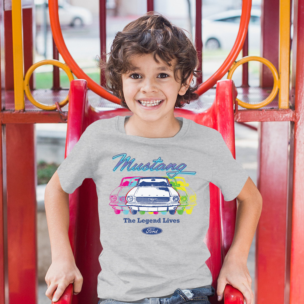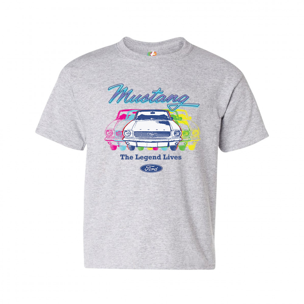 FORD MUSTANG THE LEGEND LIVES youth t-shirt american classic licensed kids gray