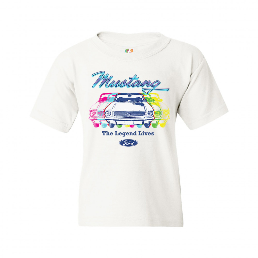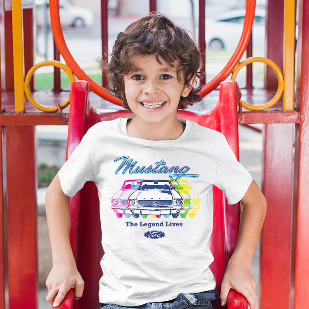 FORD MUSTANG THE LEGEND LIVES youth t-shirt american classic licensed kids white
