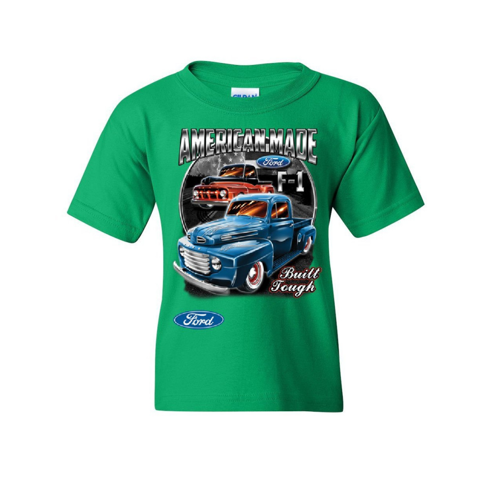 FORD PICKUP TRUCKS F1 youth t-shirt american made hot rod built tough kids tee green