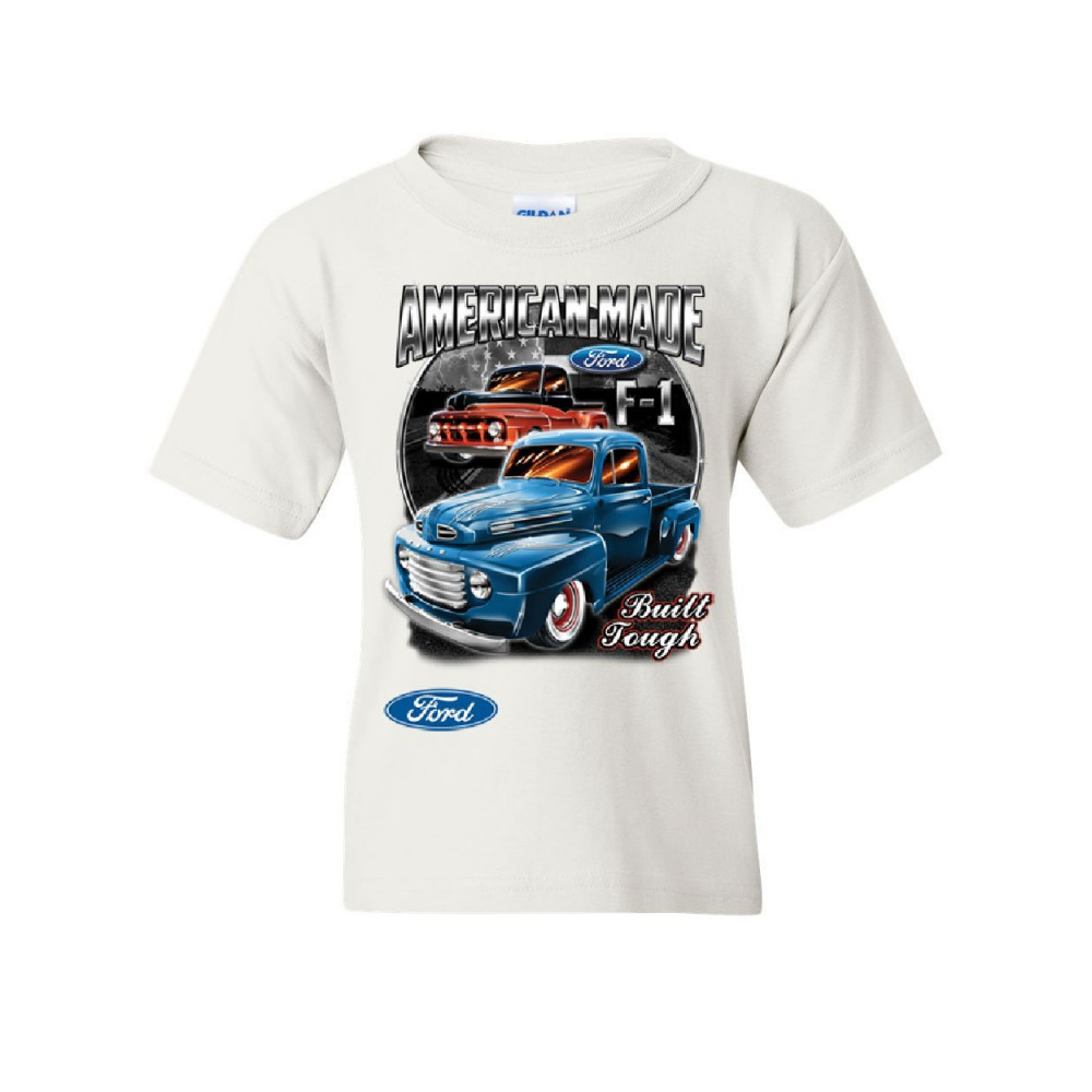 FORD PICKUP TRUCKS F1 youth t-shirt american made hot rod built tough kids tee white