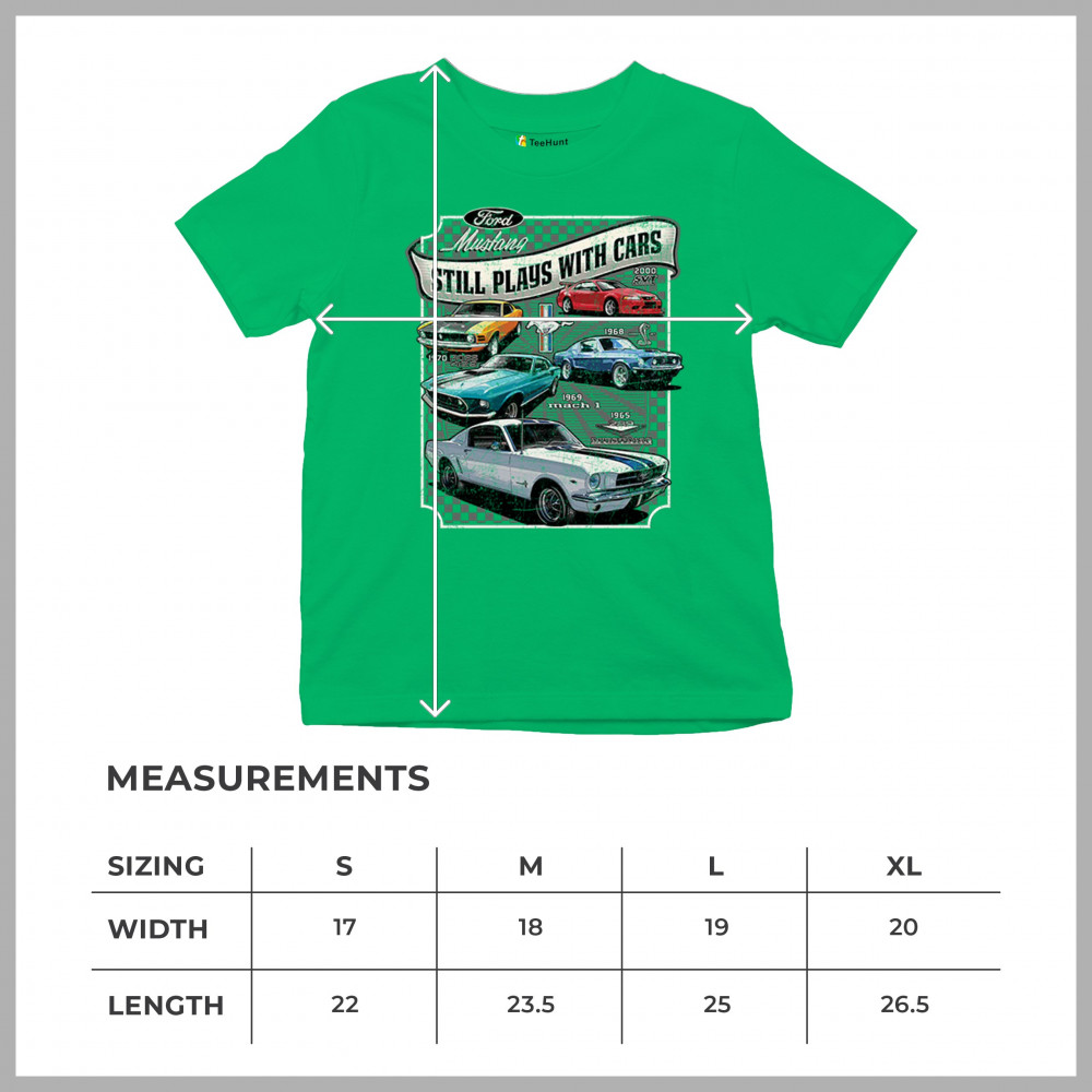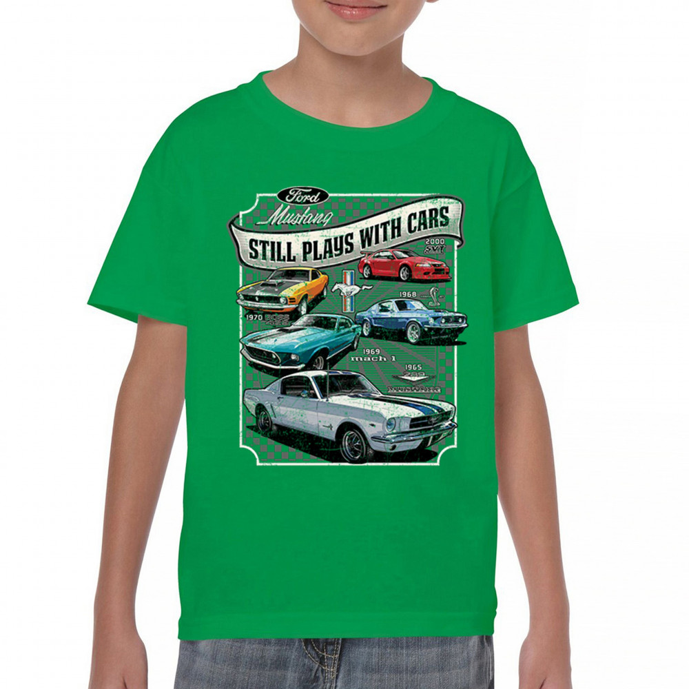 This bold Ford Mustang "Still Plays With Cars" design showcases six classic models from 1965 to 2000, including the 1969 Mach 1, 1970 Boss 302, and 2000 SVT. A dream graphic for muscle car lovers, collectors, and pony car fans. Great for classic auto shows, retro cruises, garage wear, or car clubs.
