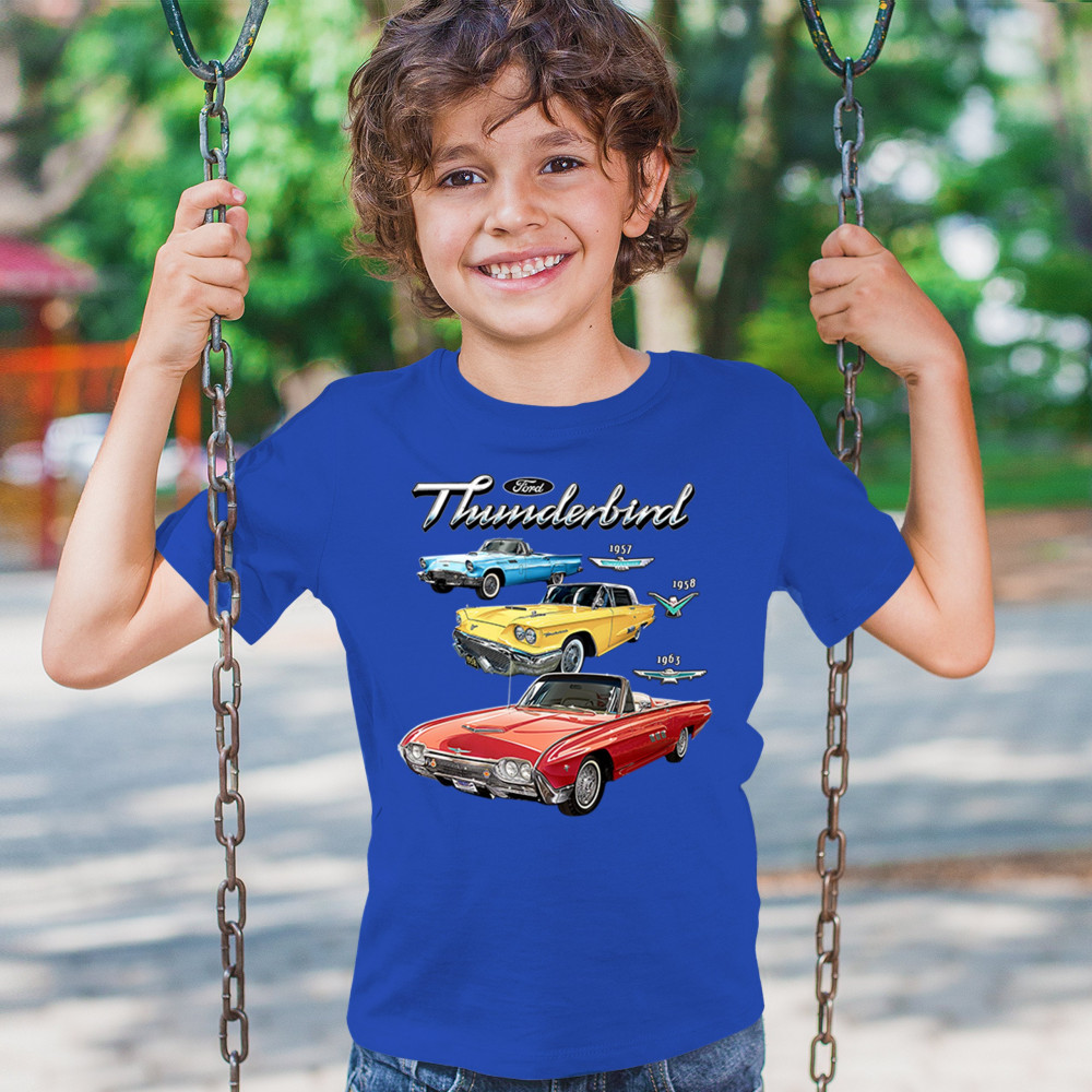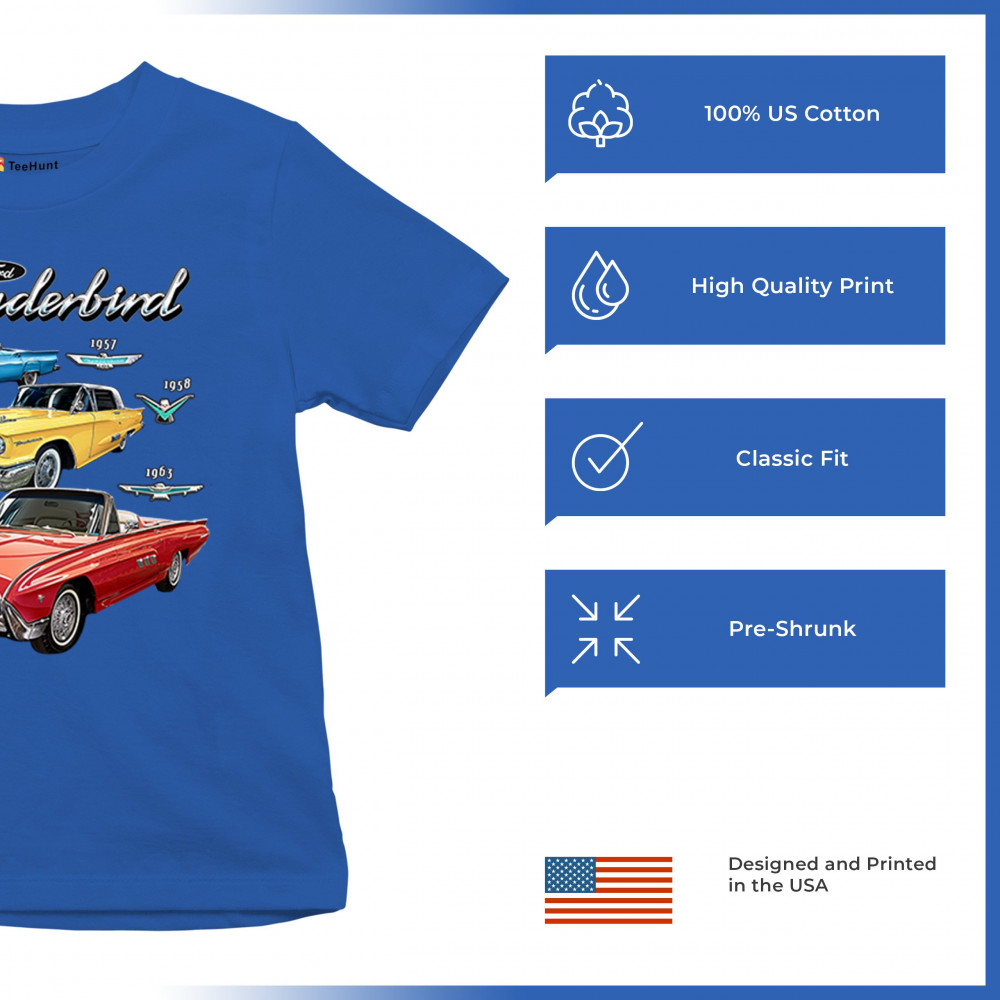 Iconic Ford Thunderbird design with 1957, 1958, and 1963 models. A vintage tribute for car collectors and American muscle fans.