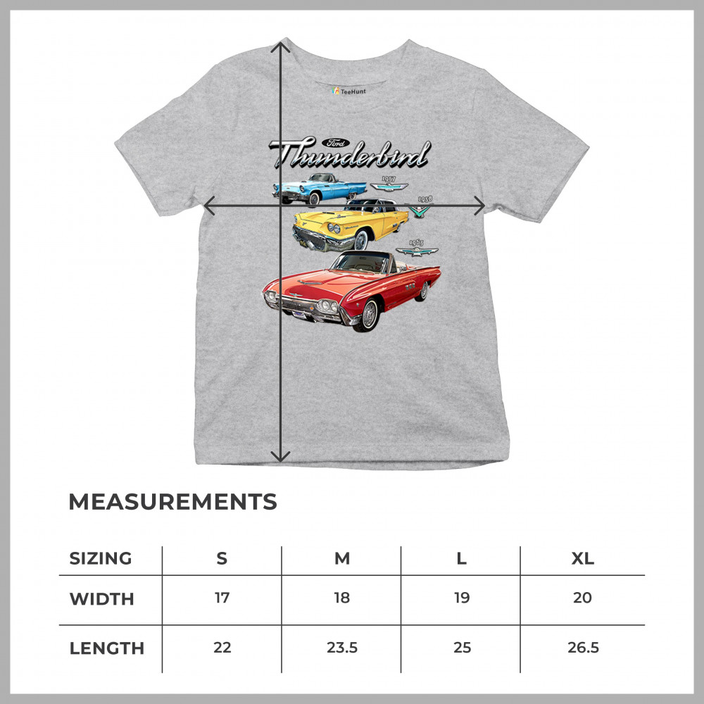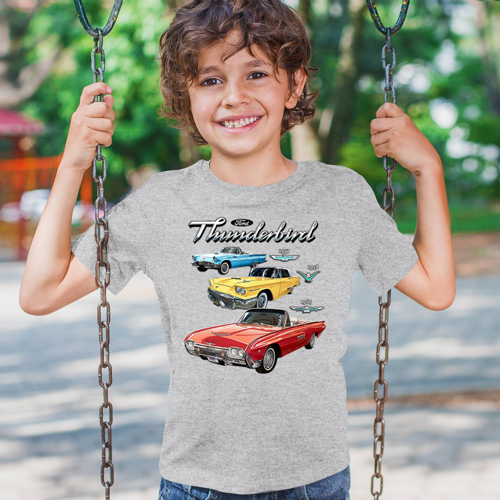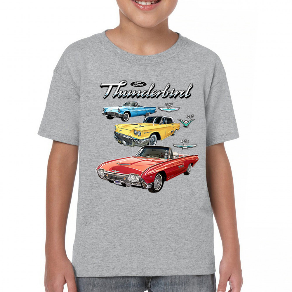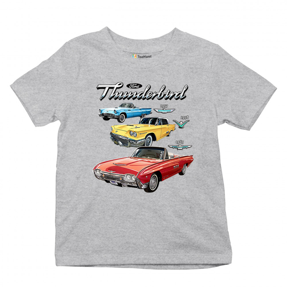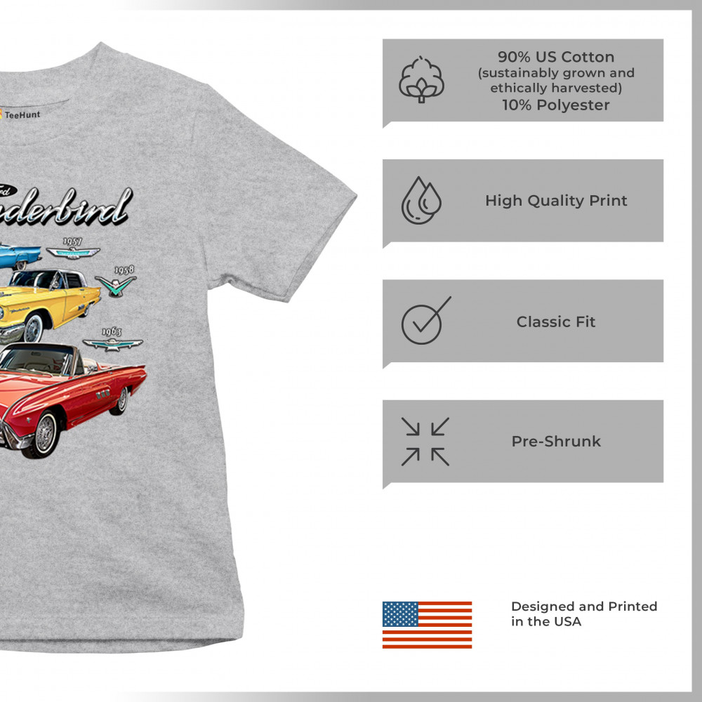 Iconic Ford Thunderbird design with 1957, 1958, and 1963 models. A vintage tribute for car collectors and American muscle fans.