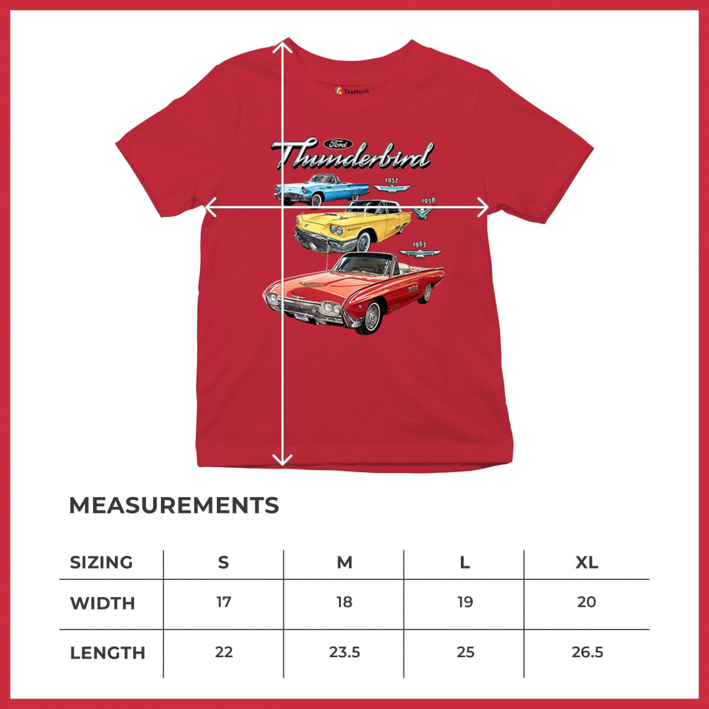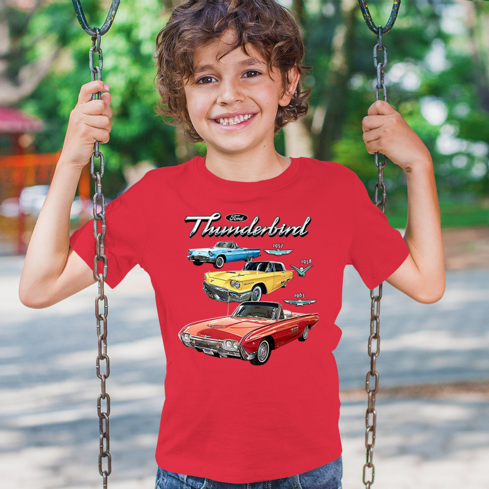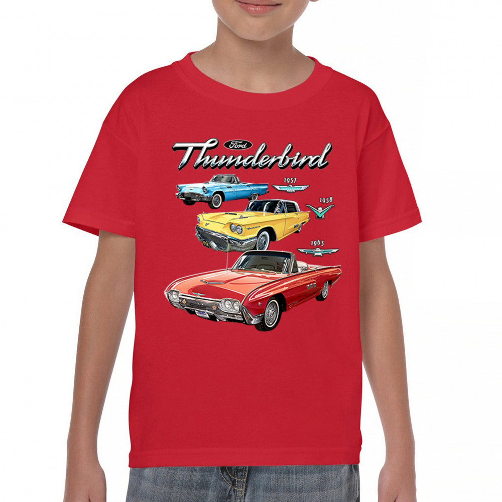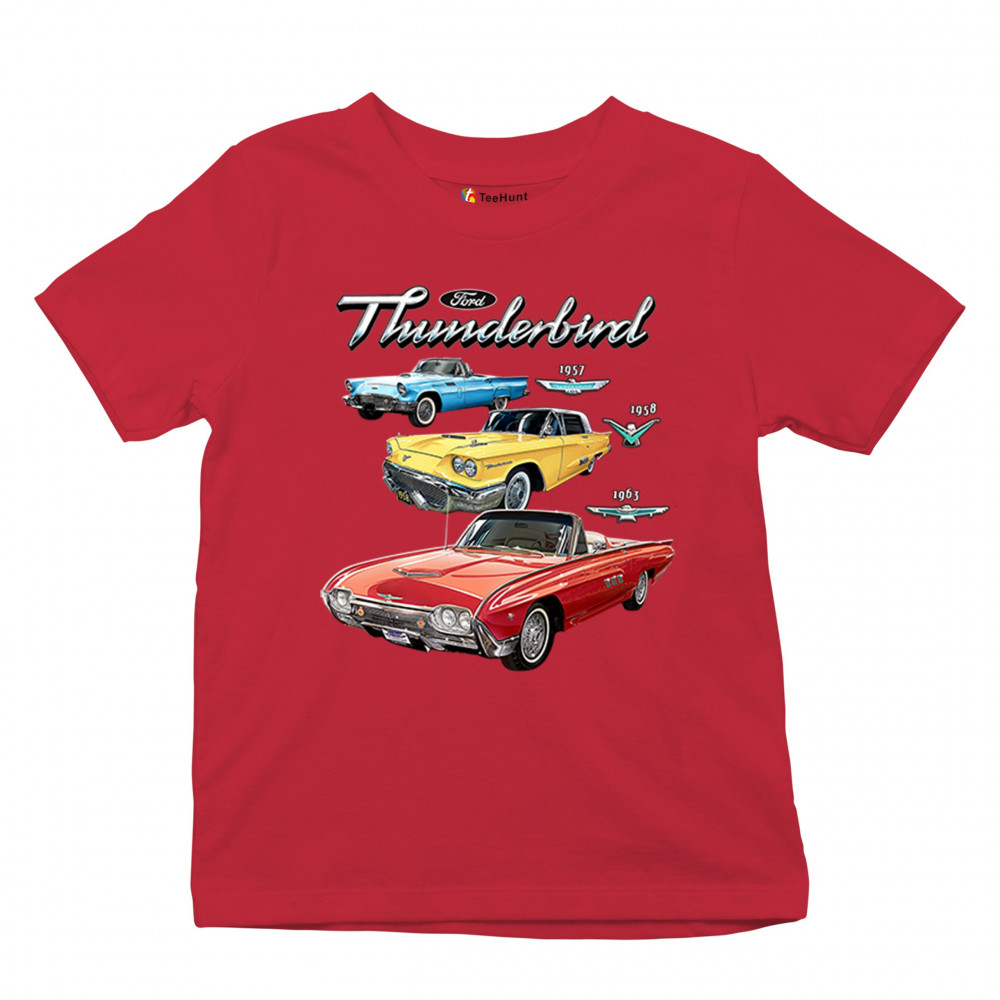 Iconic Ford Thunderbird design with 1957, 1958, and 1963 models. A vintage tribute for car collectors and American muscle fans.
