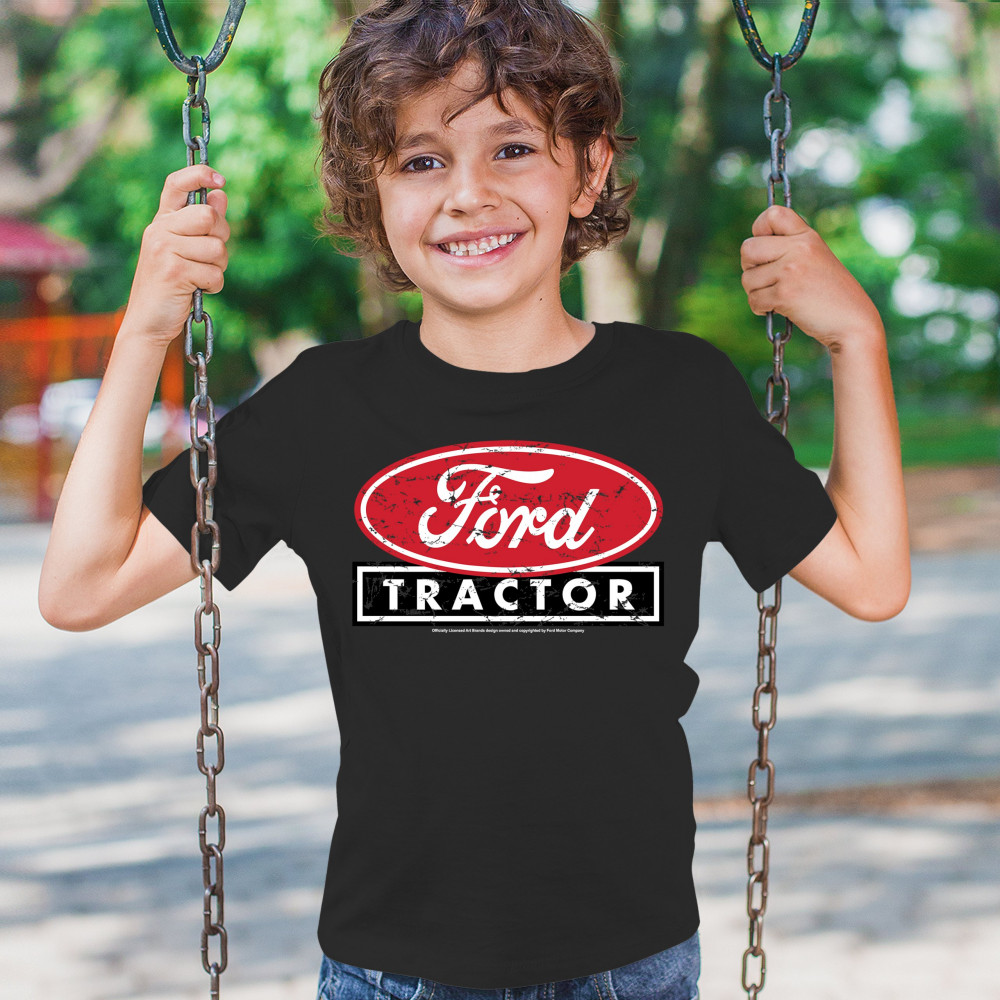 FORD TRACTOR RED DISTRESSED LOGO youth t-shirt vintage farm classic brand kids black