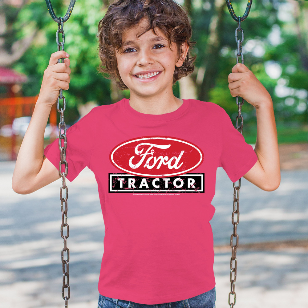 Classic Ford Tractor logo design in rustic red. A vintage tribute for farmers, collectors, and fans of agricultural heritage.