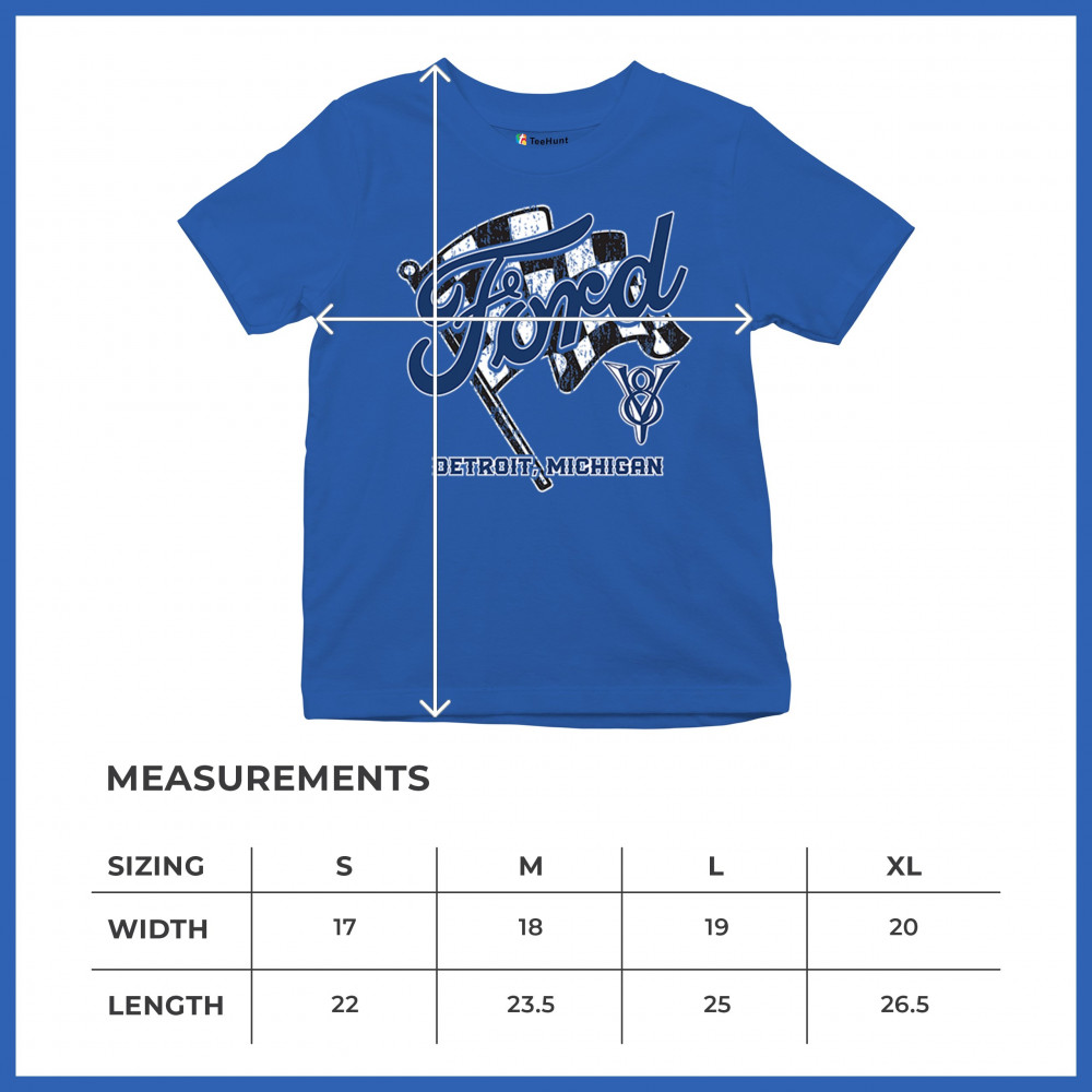 This officially licensed Ford Motor Co. design pays homage to Detroit, Michigan’s automotive legacy. Featuring the checkered flag and V8 emblem, it's perfect for classic car lovers, Mustang enthusiasts, and those who appreciate high-performance vehicles. Whether you’re a fan of pony cars, vintage muscle cars, or drag racing culture, this American muscle car-inspired piece is a must-have for your collection.