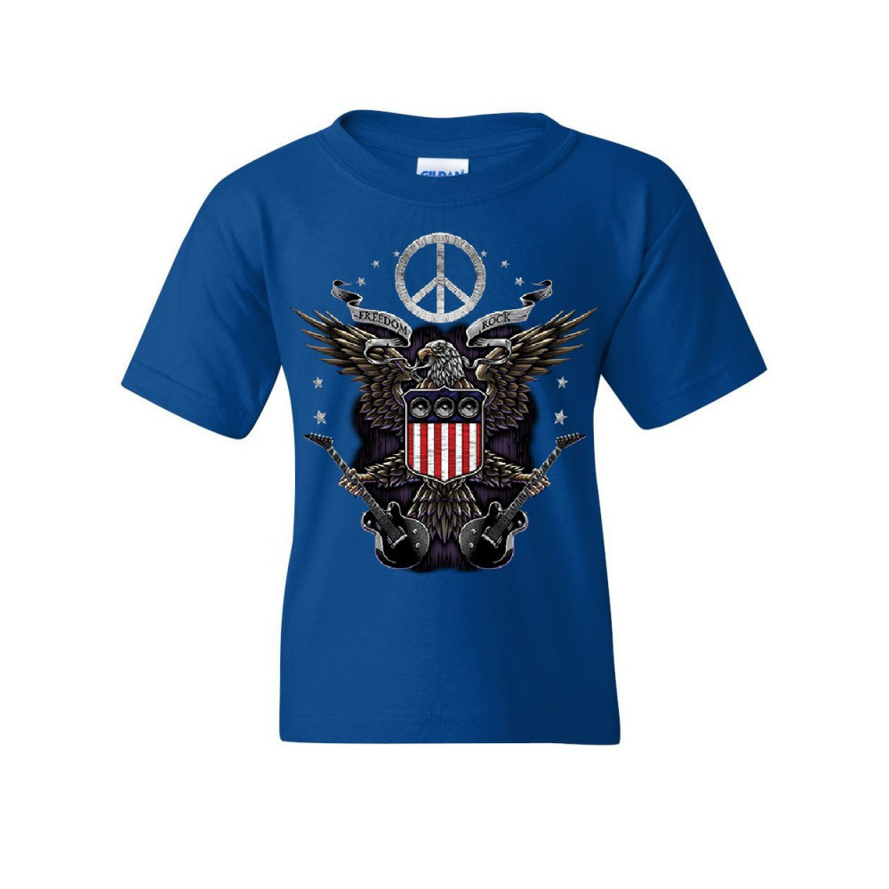 FREEDOM ROCK youth t-shirt peace american flag bald eagle 4th of july kids tee royal blue