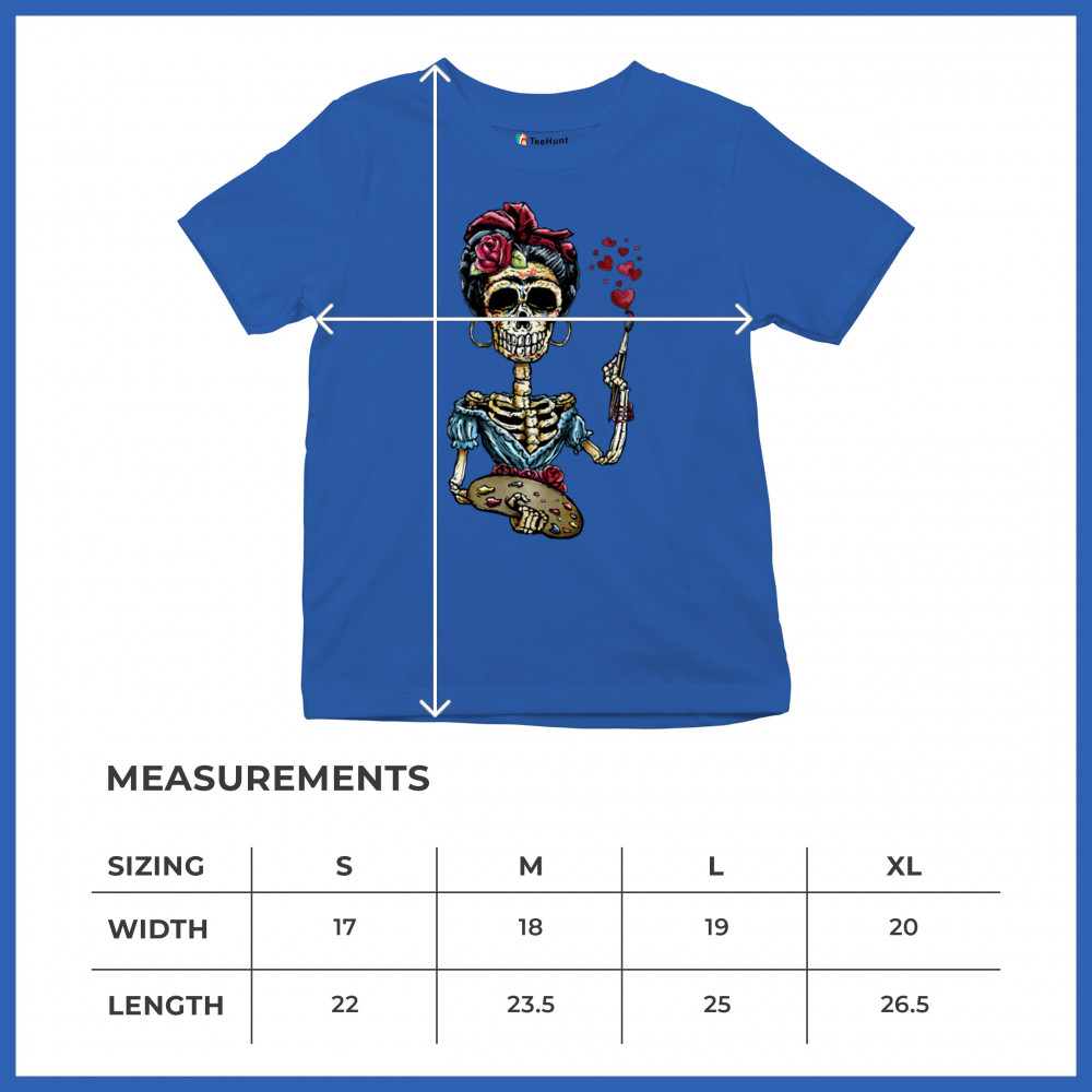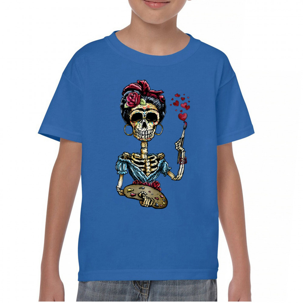 FRIDA KAHLO SUGAR SKULL youth t-shirt calavera mexican day of the dead kids royal blue