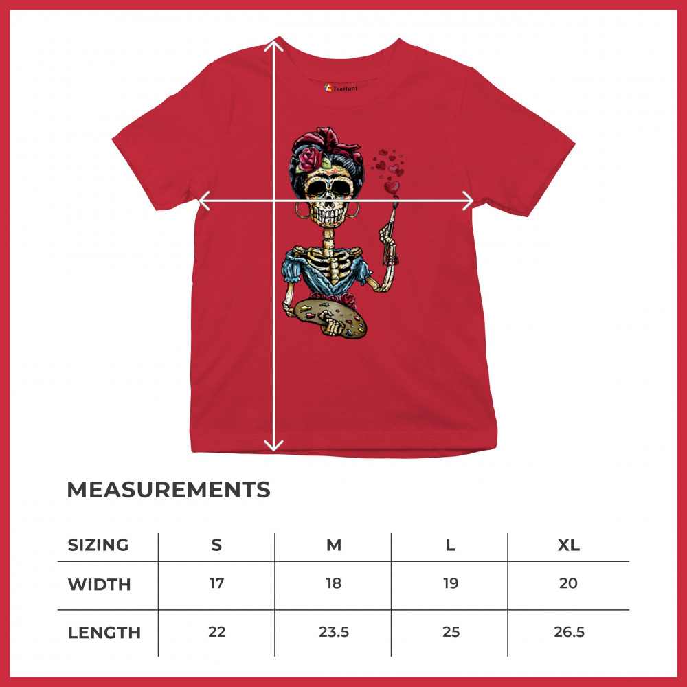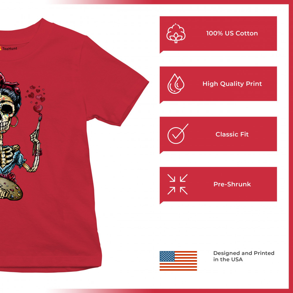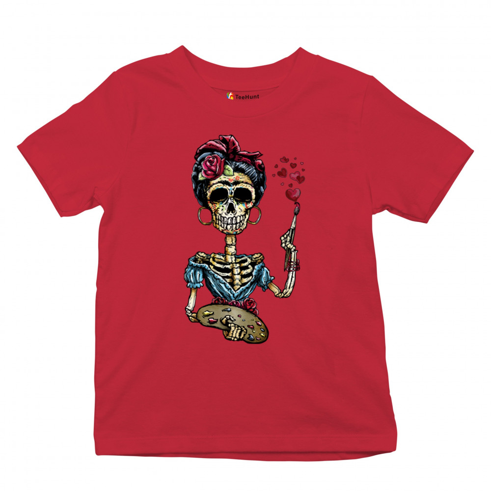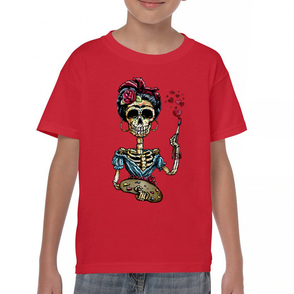 FRIDA KAHLO SUGAR SKULL youth t-shirt calavera mexican day of the dead kids red