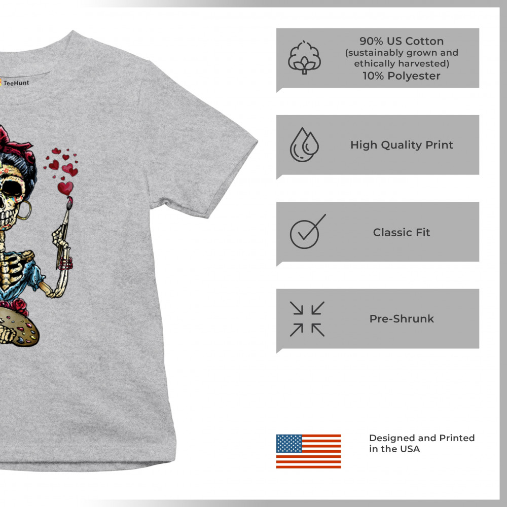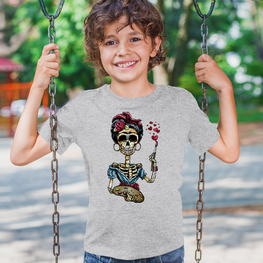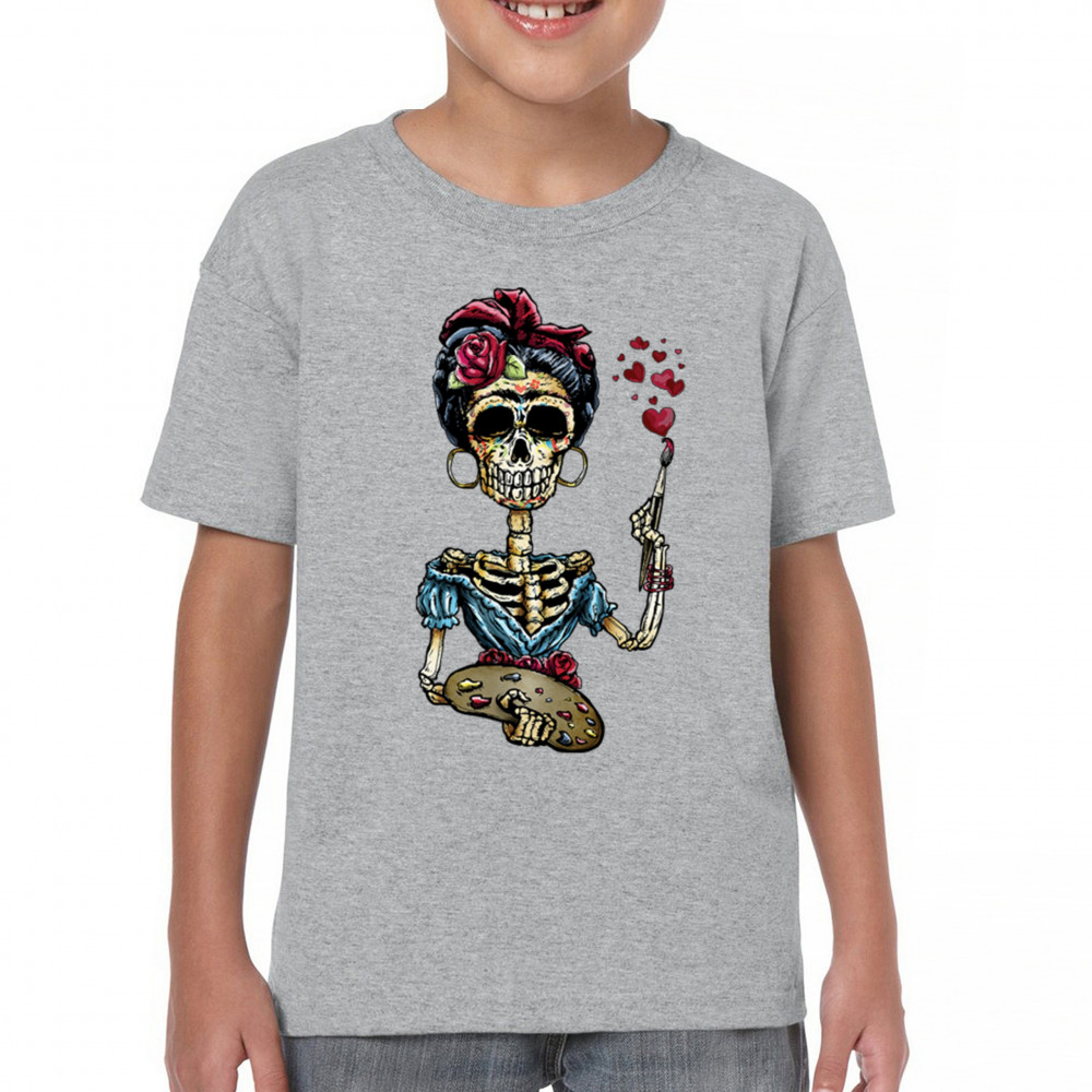 FRIDA KAHLO SUGAR SKULL youth t-shirt calavera mexican day of the dead kids gray