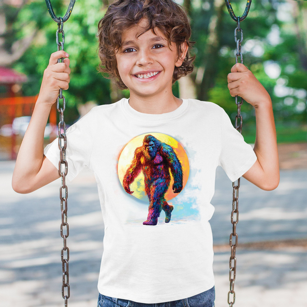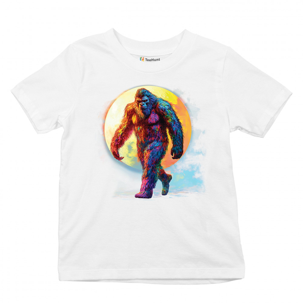 Step into a vivid cryptid dream with this rainbow Bigfoot design. Featuring a multicolor Sasquatch walking past a full moon, it fuses mythical mystery with bold, surreal art. Perfect for festival fans, night hikers, and lovers of the unexplained, this design brings eye-catching style to your wild side.