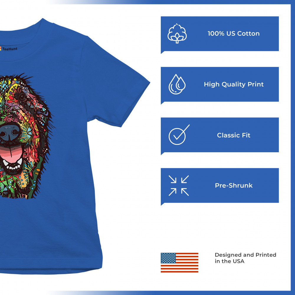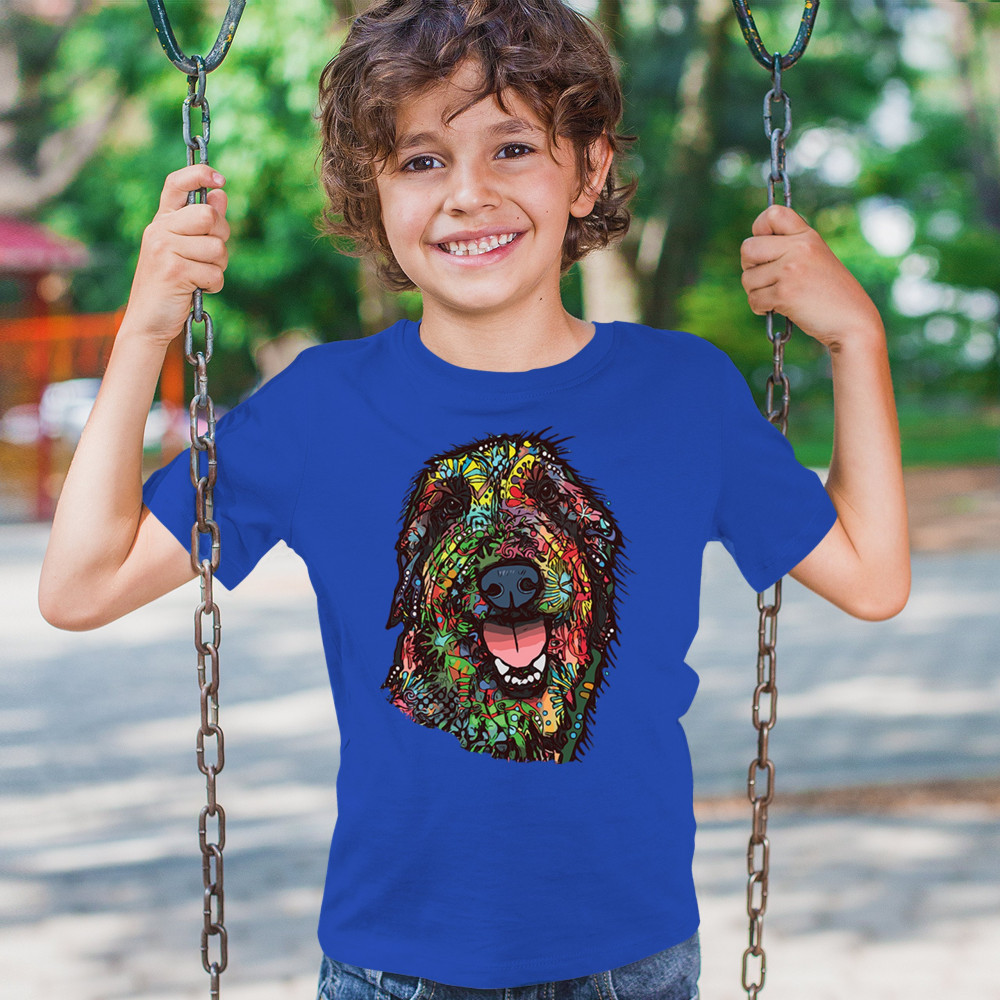 FUNNY FEELING HAPPY DOG FACE youth t-shirt dean russo cheerful pet kids royal blue
