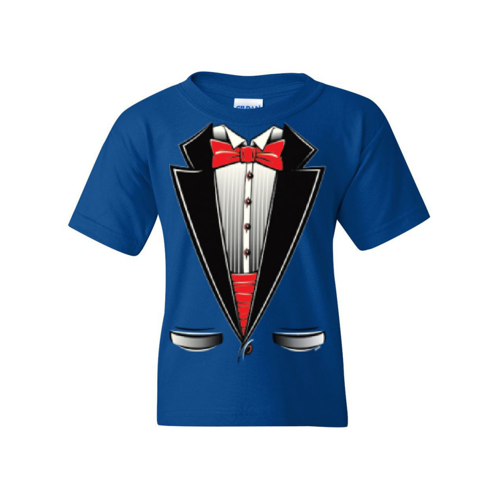 FUNNY TUXEDO BOW TIE youth t-shirt tux wedding party tee royal blue