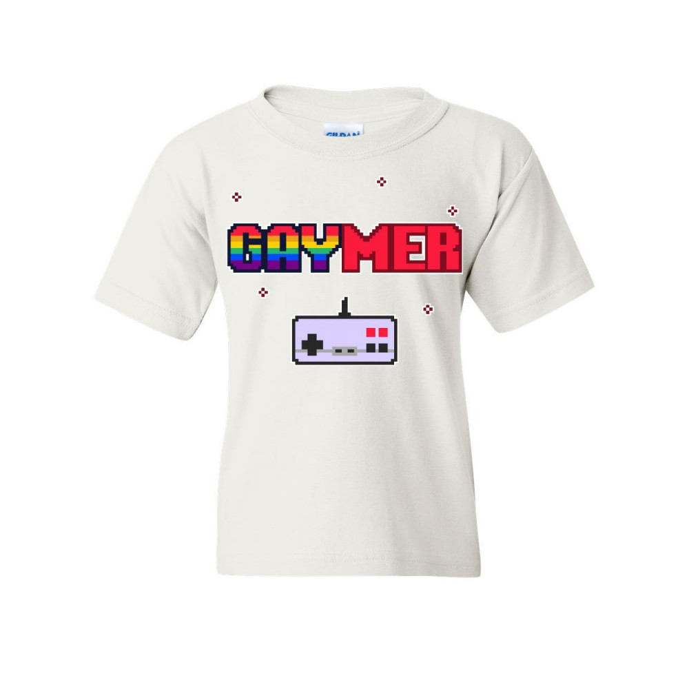 QUEER GAYMER CONTROLLER gaymer youth t-shirt lgbt queer rainbow gay gaming console controller kids tee white