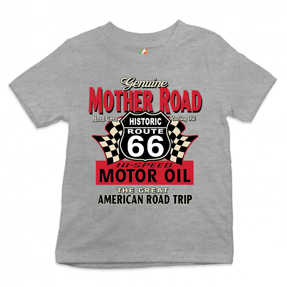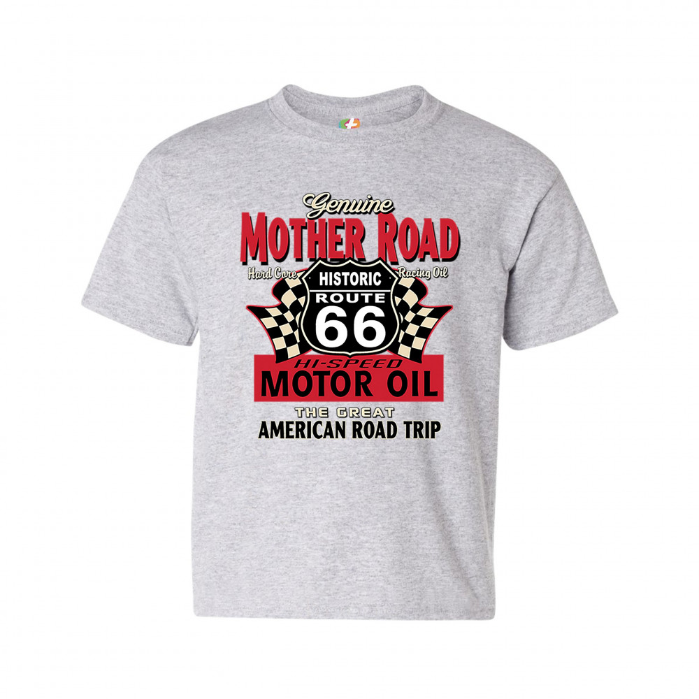 GENUINE MOTHER ROAD HISTORIC ROUTE 66 youth t-shirt american road trip kids gray