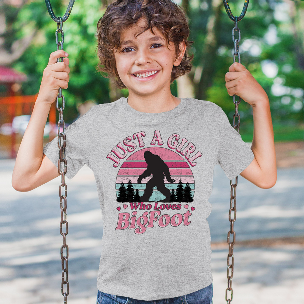 Celebrate your love for all things cryptid with this cute and retro Bigfoot design. Perfect for girls obsessed with Sasquatch, this playful graphic features a pink and teal sunset, ideal for fans, campers, explorers, and believers. A fun gift for paranormal lovers and outdoorsy adventurers alike.