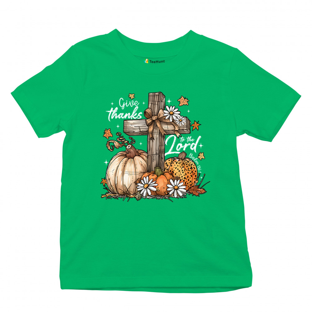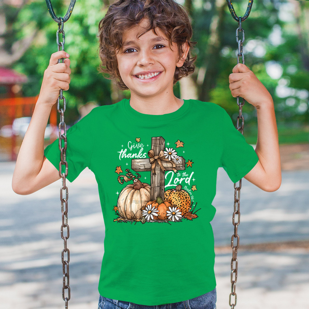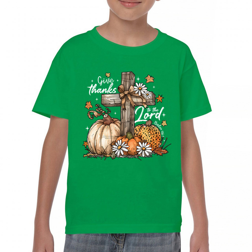 Thanksgiving design with pumpkins, daisies, and rustic cross. Perfect for Turkey Day, faithful family gatherings, and fall festival blessings.