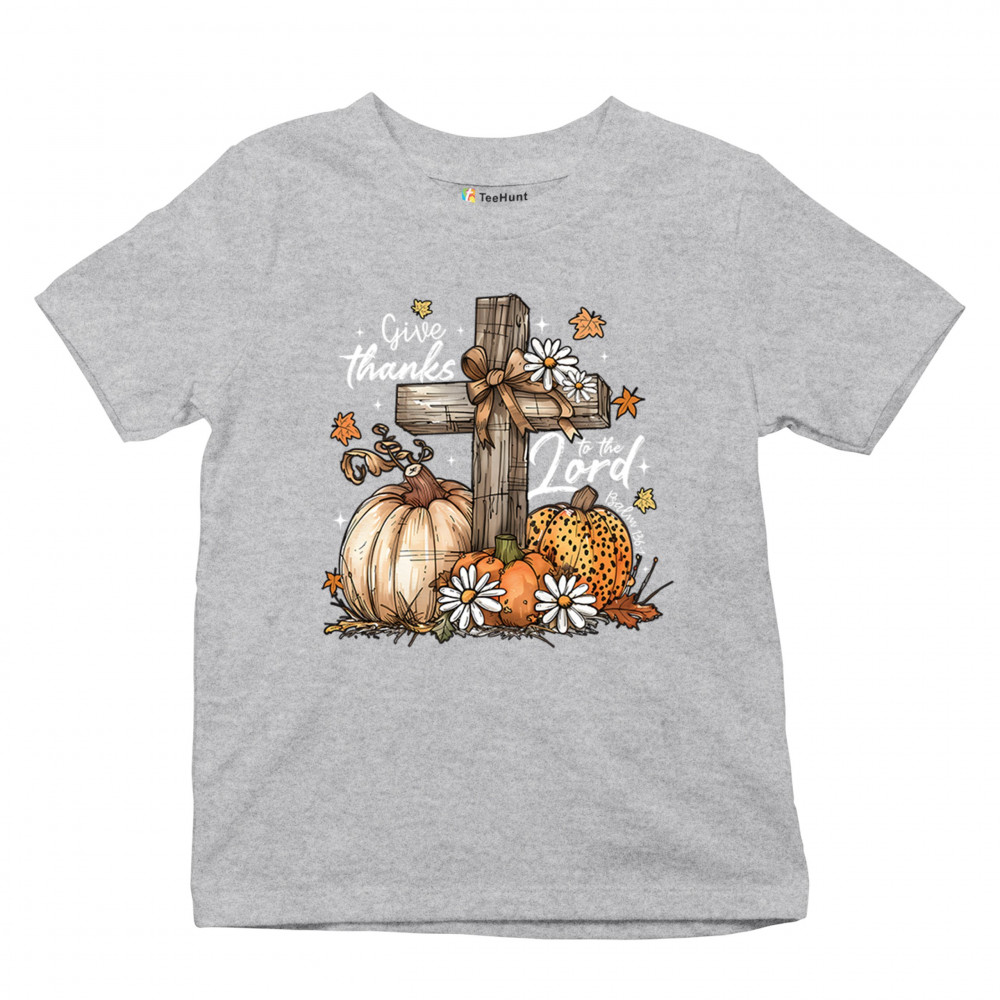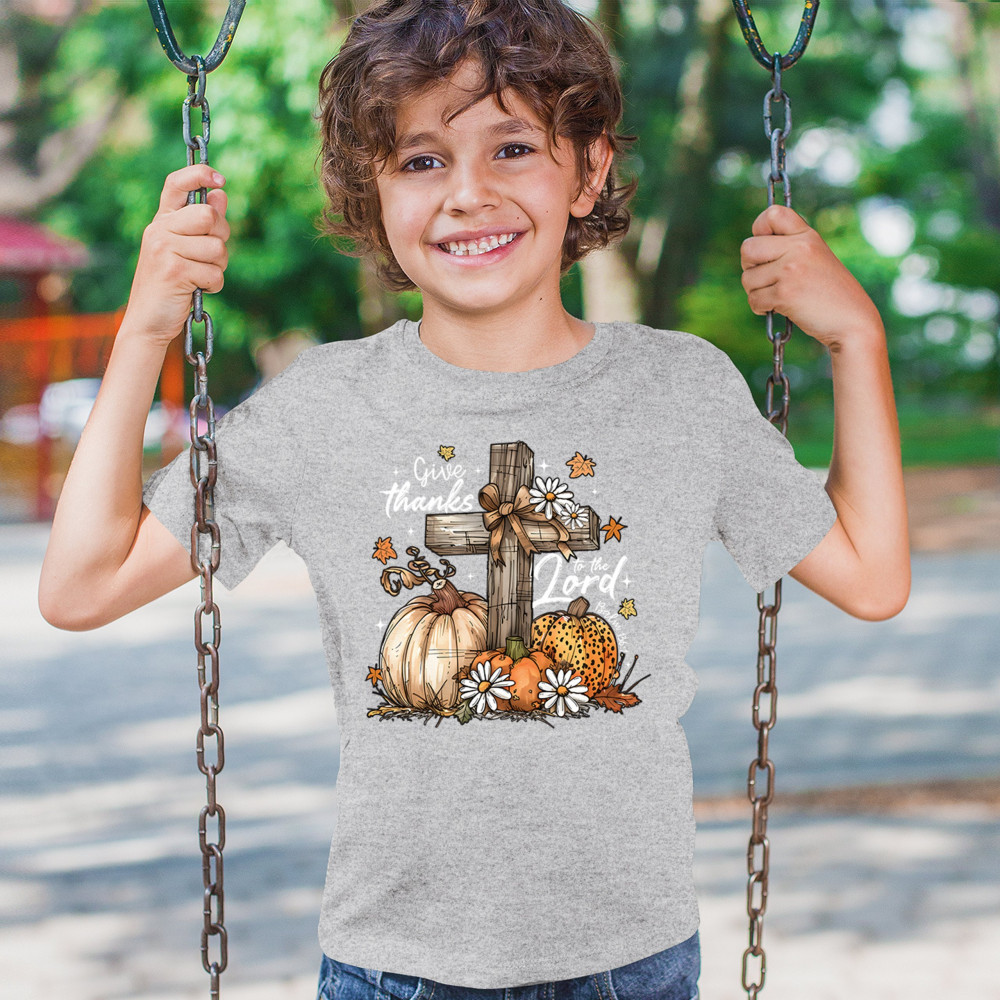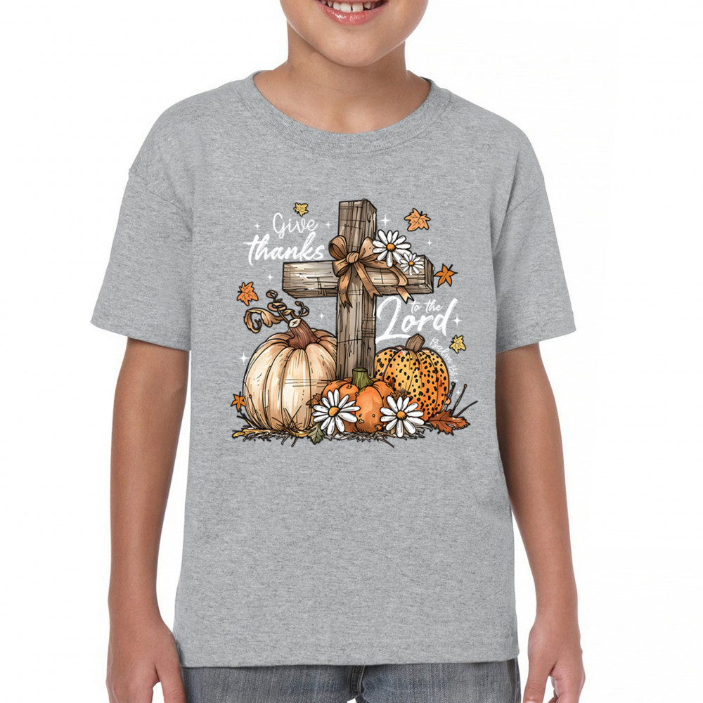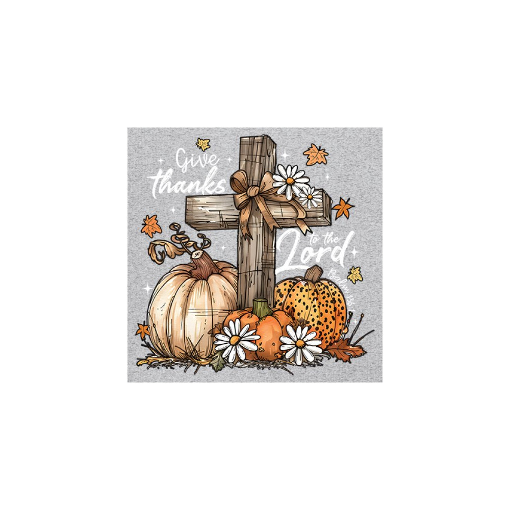 Thanksgiving design with pumpkins, daisies, and rustic cross. Perfect for Turkey Day, faithful family gatherings, and fall festival blessings.