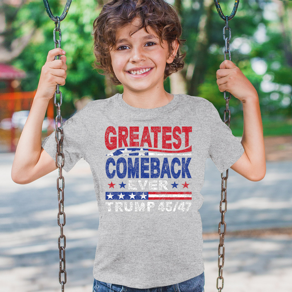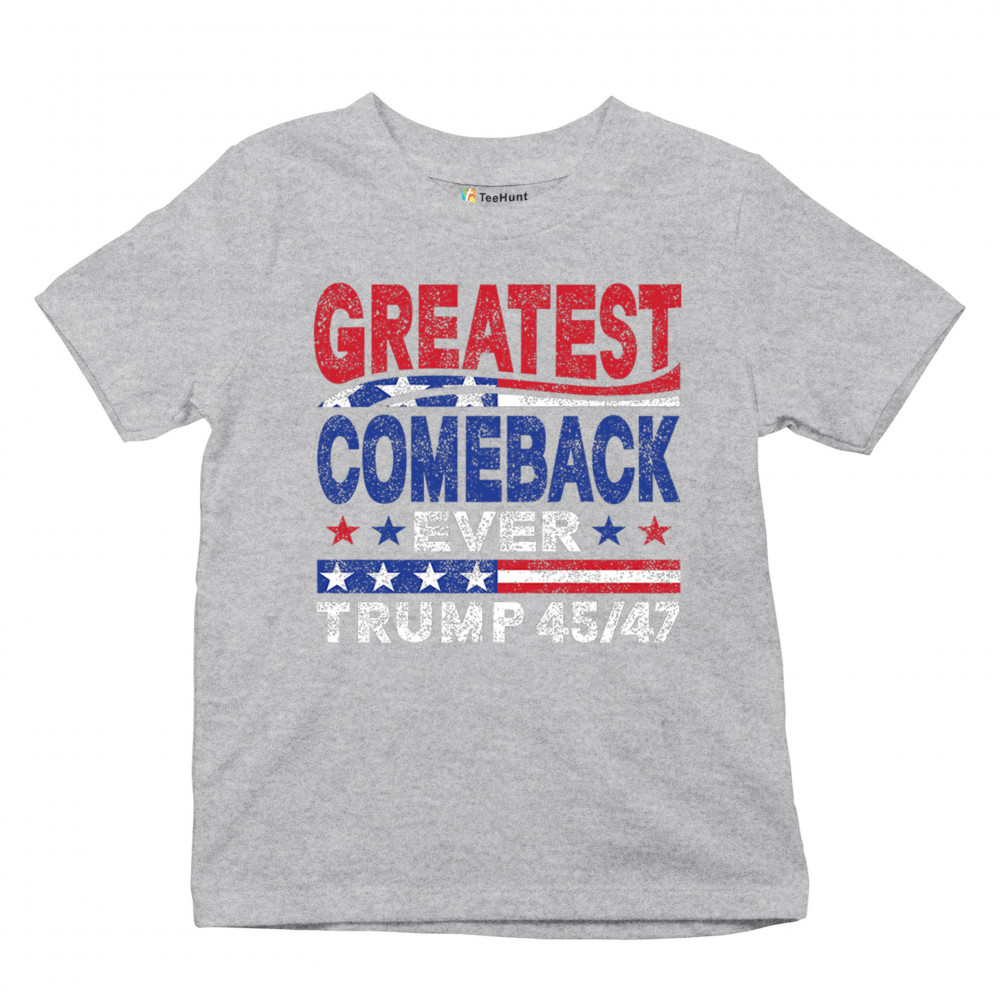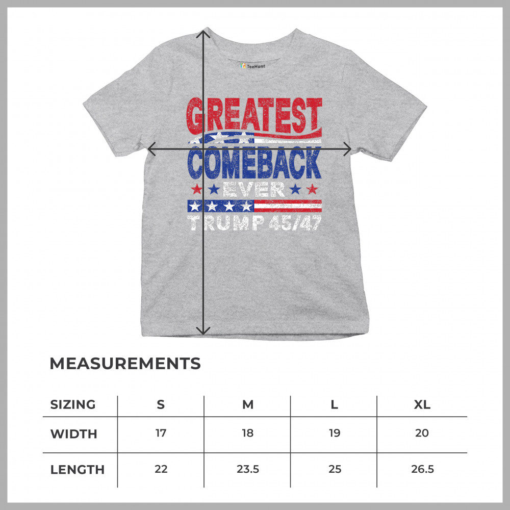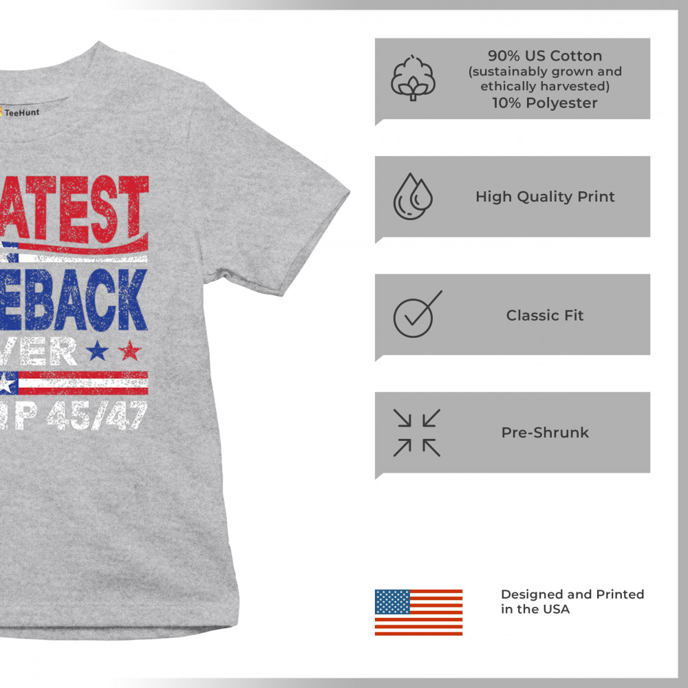 The "Greatest Comeback Ever" design is a tribute to resilience, patriotism, and the fight for American values. Featuring bold patriotic colors and a slogan that embodies the spirit of victory, this design is perfect for Trump supporters and conservatives who believe in never surrendering. Celebrate the leadership of Donald J. Trump as the 45th and 47th president and join the movement for America's future.