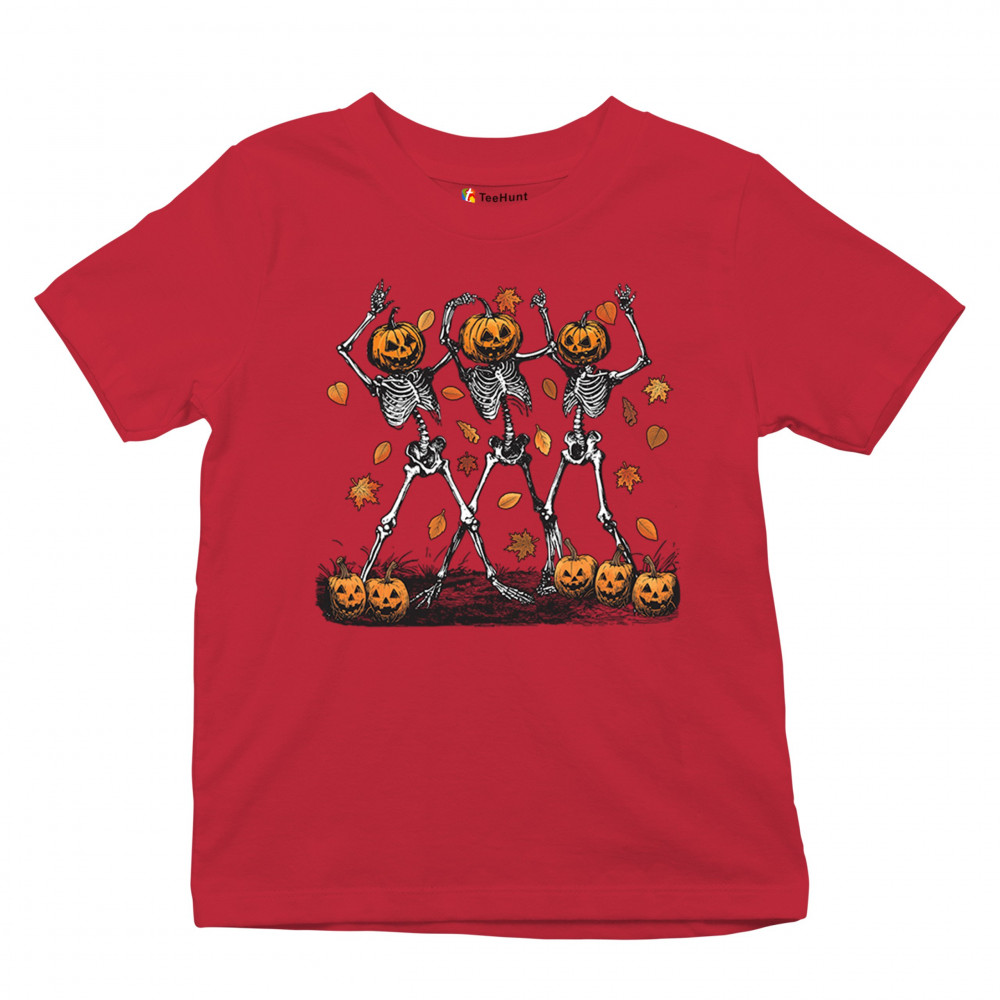 Add a touch of spooky fun to your wardrobe with this lively design featuring pumpkin-headed skeletons dancing through a swirl of autumn leaves. Perfect for Halloween parties, trick-or-treating, and fall festivals, this design is a must-have for anyone who enjoys the whimsical side of the spooky season. Made with comfort and quality in mind, this is the perfect apparel for all your October gatherings and events. Wear it to show off your Halloween spirit!