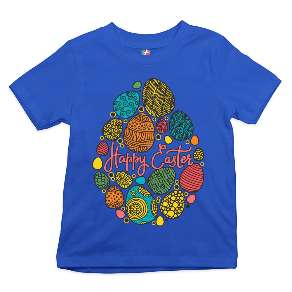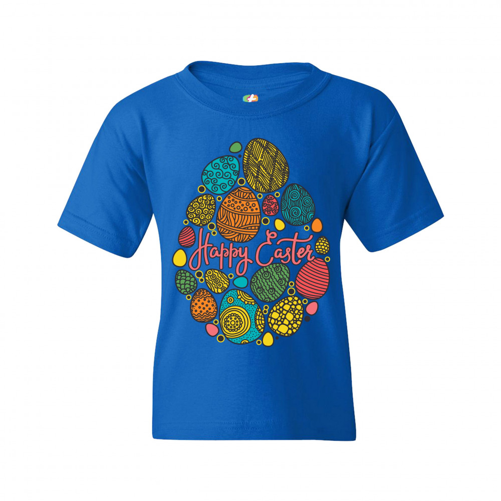 HAPPY EASTER youth t-shirt pascha easter eggs jesus ressurection sunday kids royal blue