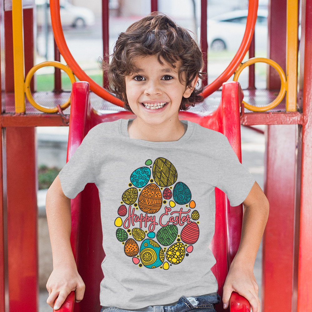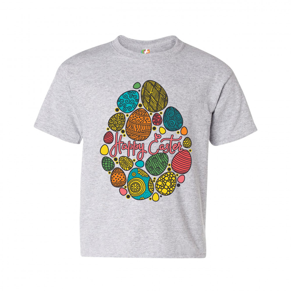 HAPPY EASTER youth t-shirt pascha easter eggs jesus ressurection sunday kids gray