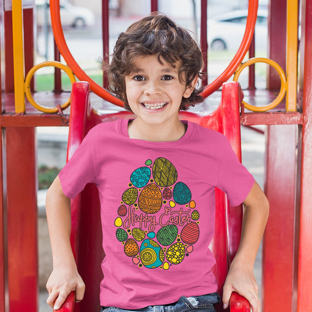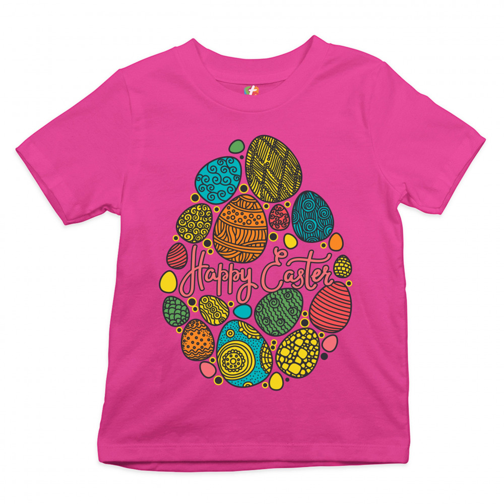 HAPPY EASTER youth t-shirt pascha easter eggs jesus ressurection sunday kids pink