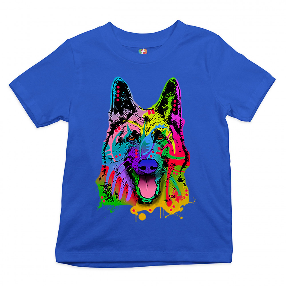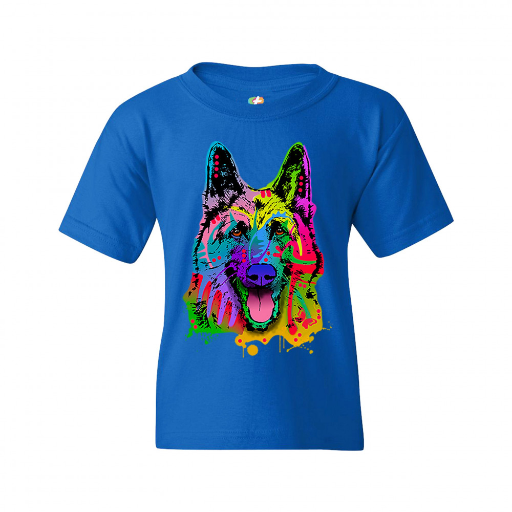 HAPPY GERMAN SHEPHERD youth t-shirt andy maxx i love my dog best friend kids royal blue