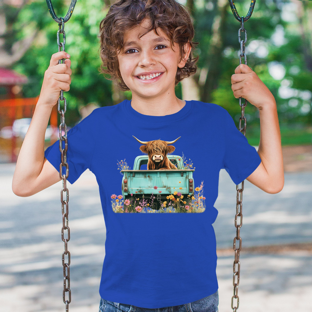 Celebrate rustic charm with this Highland Cow truck design, combining farmhouse floral truck art, boho ranch vibes, and country farmhouse shirt appeal. Perfect for cow lovers, barn style enthusiasts, and small town rural living. A vintage truck cow design that’s both cozy and stylish.