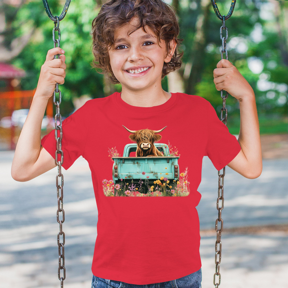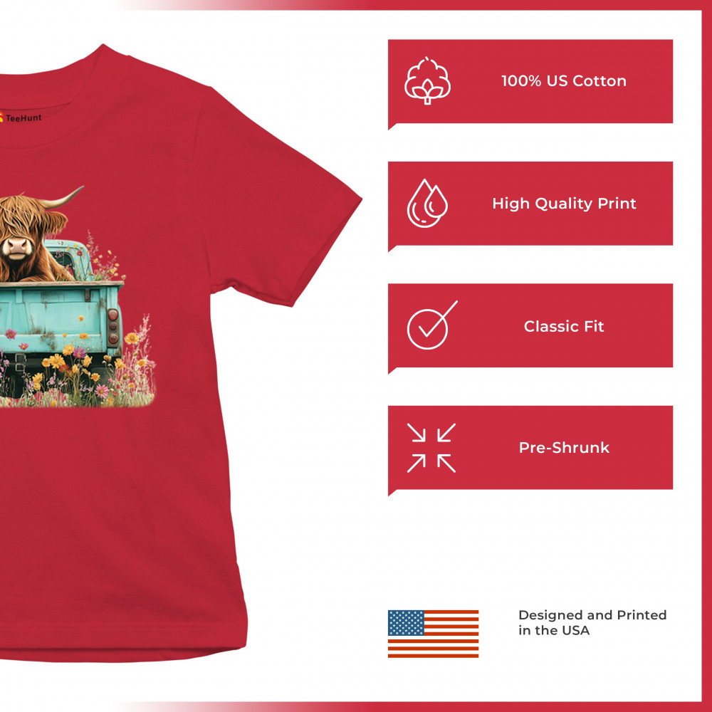 Celebrate rustic charm with this Highland Cow truck design, combining farmhouse floral truck art, boho ranch vibes, and country farmhouse shirt appeal. Perfect for cow lovers, barn style enthusiasts, and small town rural living. A vintage truck cow design that’s both cozy and stylish.
