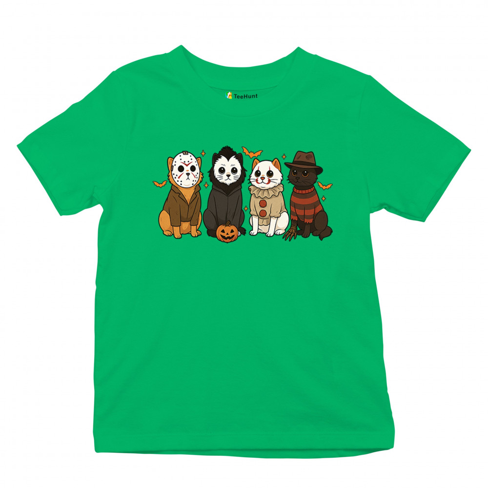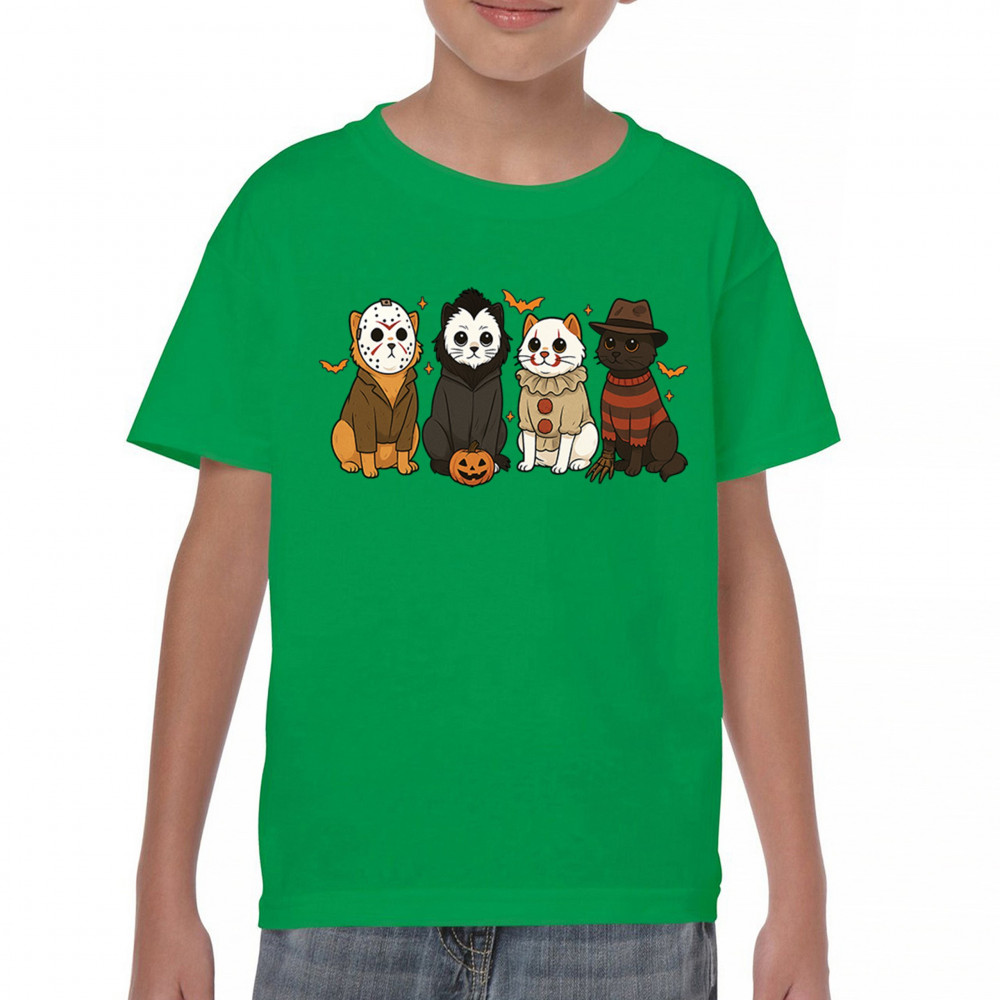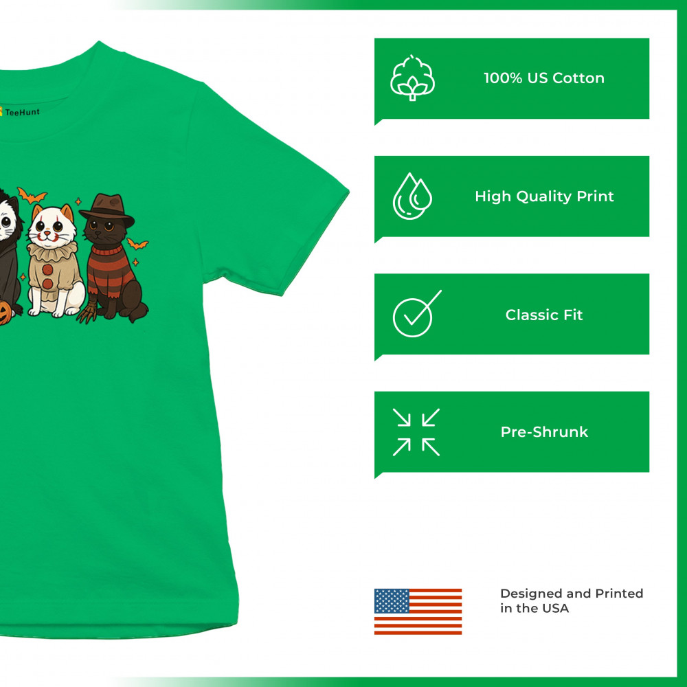 Horror Cats Halloween design with spooky costumes, Jack o Lantern details, and Haunted House vibes. Perfect October 31 outfit for cat lovers.