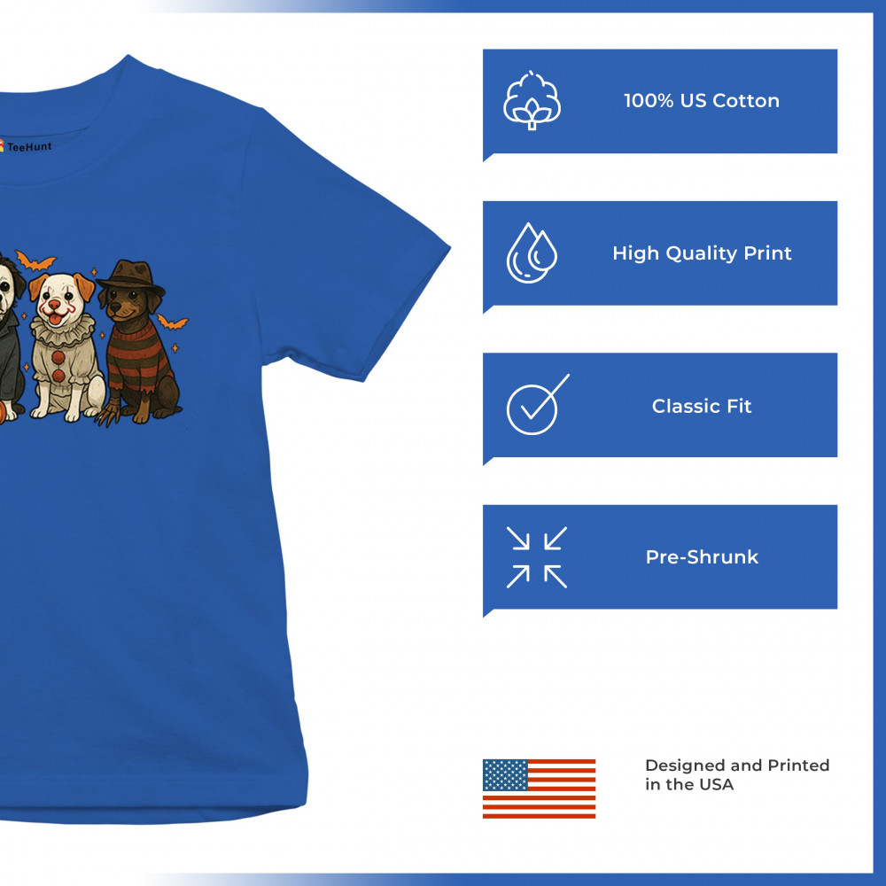 Celebrate Halloween with the Horror Dogs design featuring pups in creepy costumes inspired by spooky icons. A perfect pick for October 31 haunted house visits, autumn nights, or parties full of Halloween vibes. Whether you love dogs, witches, or pumpkin head fun, this festive design makes a playful addition to the spooky season.