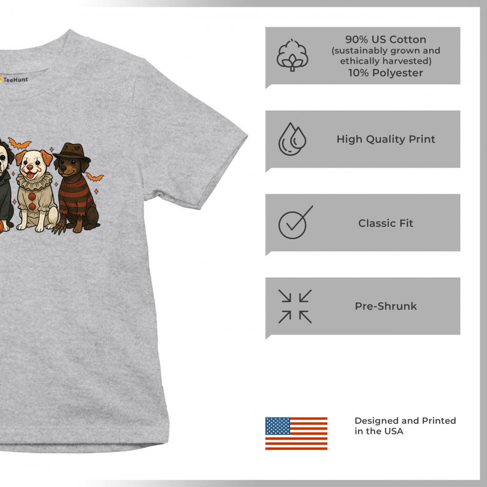 Celebrate Halloween with the Horror Dogs design featuring pups in creepy costumes inspired by spooky icons. A perfect pick for October 31 haunted house visits, autumn nights, or parties full of Halloween vibes. Whether you love dogs, witches, or pumpkin head fun, this festive design makes a playful addition to the spooky season.