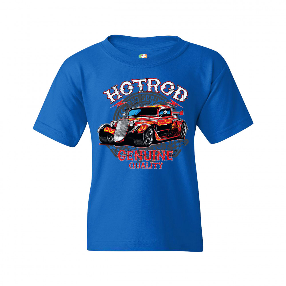 HOTROD youth t-shirt american muscle hot rod old school drag racing kids royal blue
