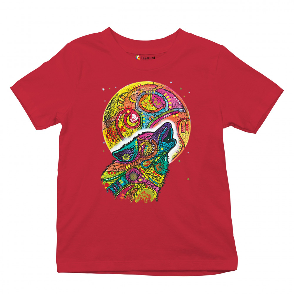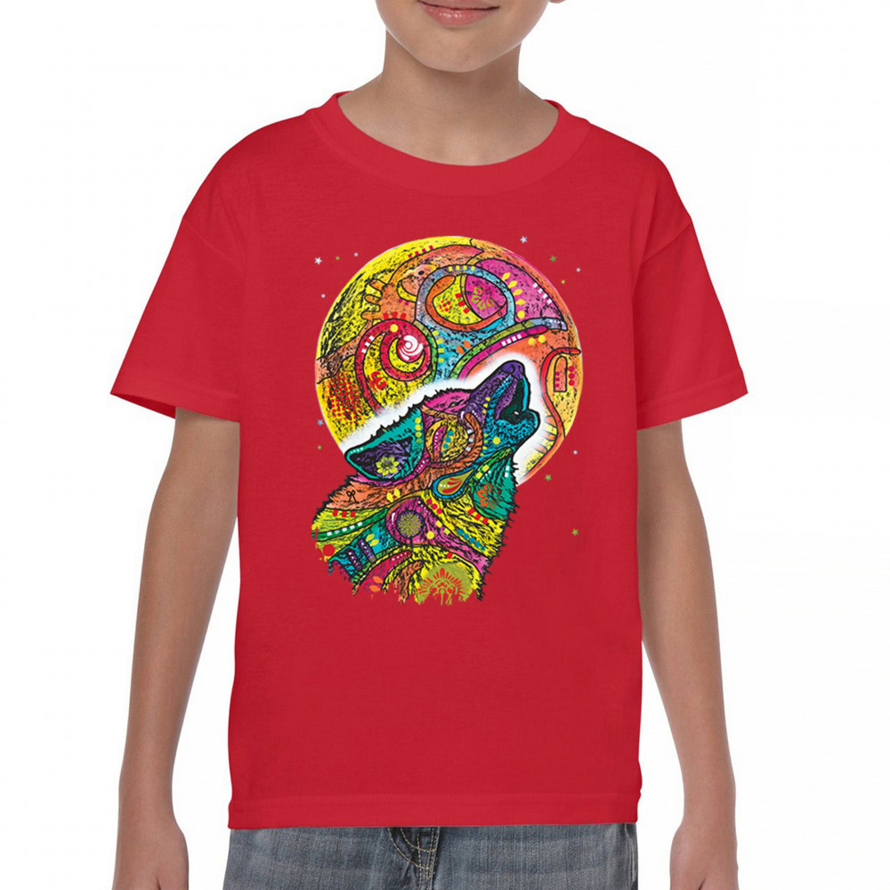 HOWLING WOLF AND MOON youth t-shirt dean russo colorful wild life kids red