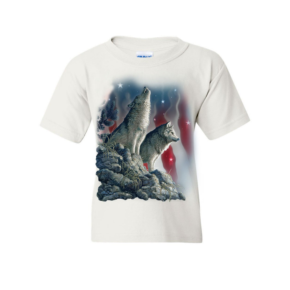 HOWLING WOLF PACK youth t-shirt stars and stripes american wildlife kids tee white