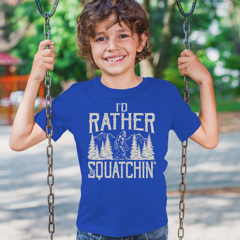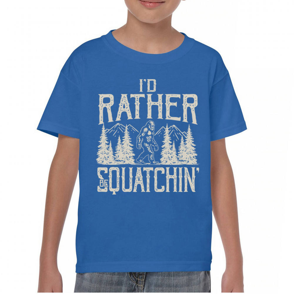 "I’d Rather Be Squatchin’" – A bold design for Bigfoot fans and outdoor adventurers, featuring Sasquatch in a wilderness setting. Perfect for hikers and cryptid enthusiasts!