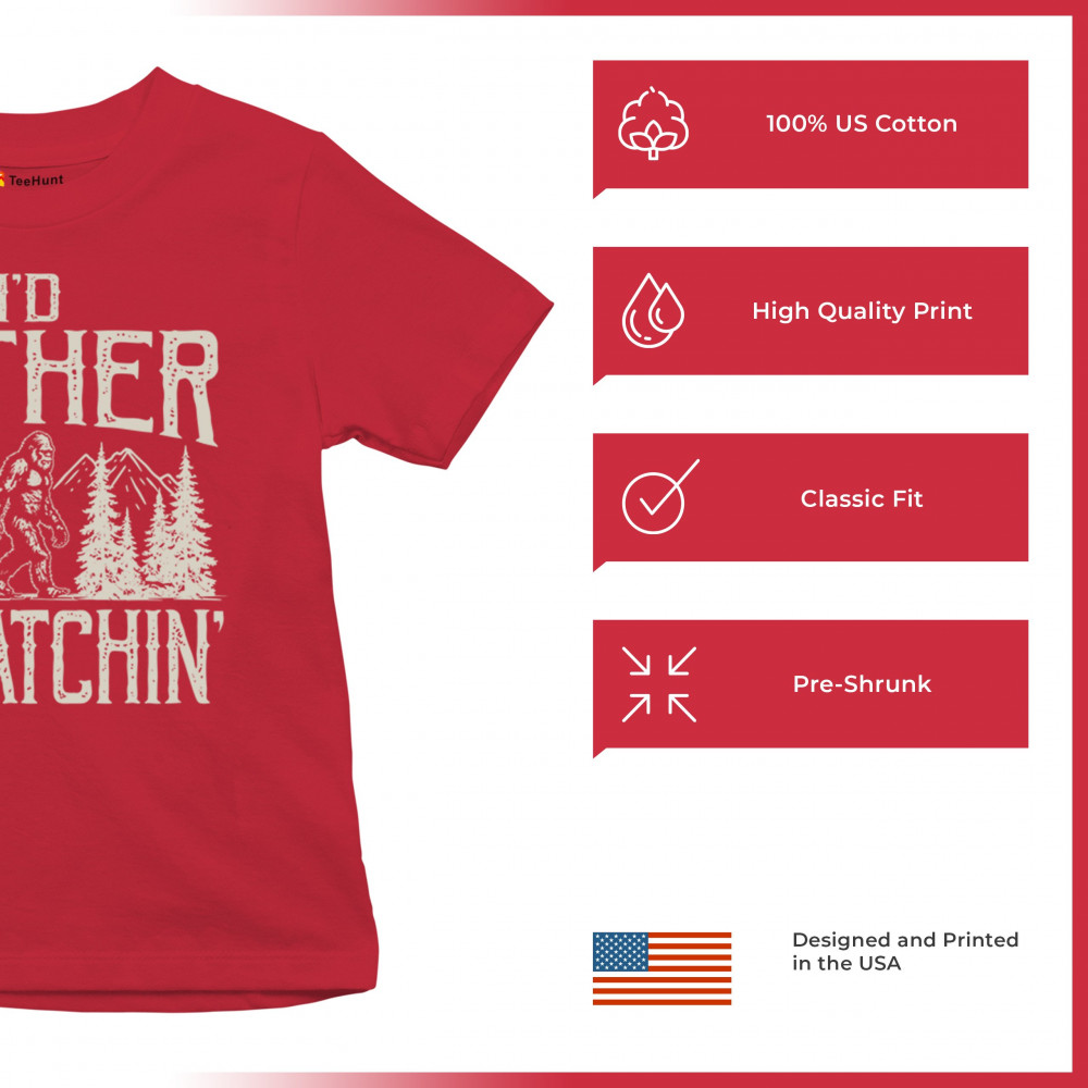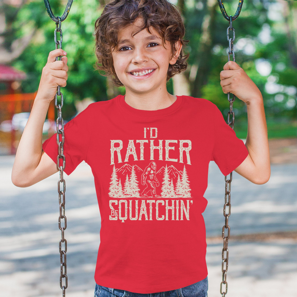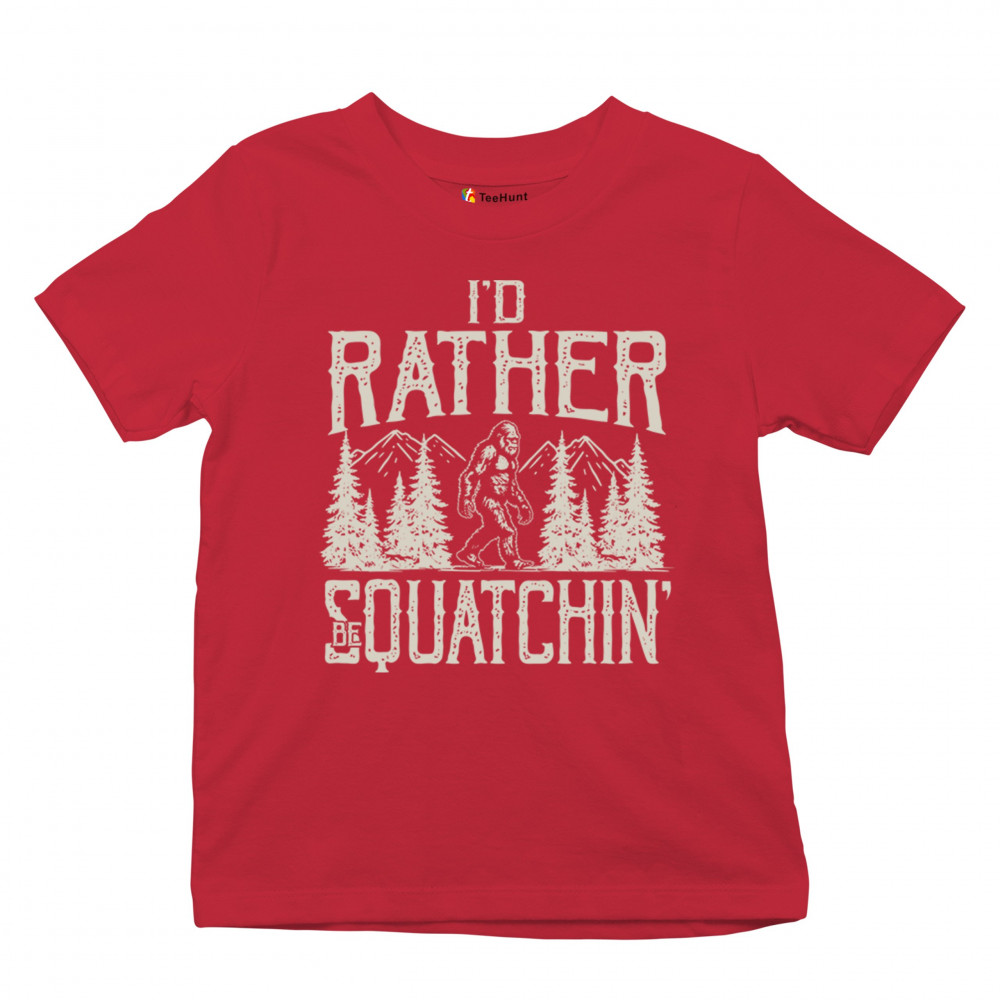 "I’d Rather Be Squatchin’" – A bold design for Bigfoot fans and outdoor adventurers, featuring Sasquatch in a wilderness setting. Perfect for hikers and cryptid enthusiasts!