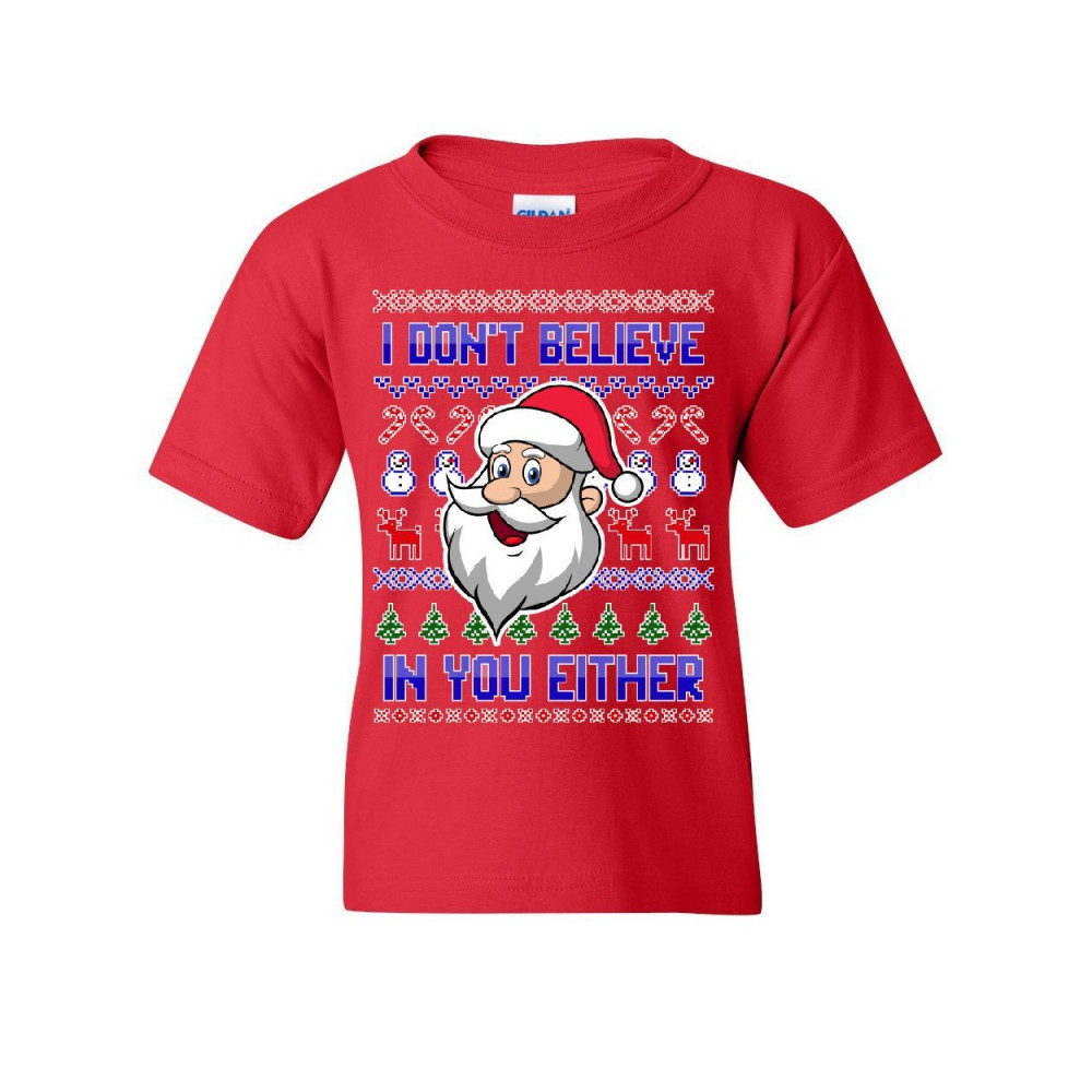 I DON'T BELIEVE IN YOU EITHER youth t-shirt christmas xmas santa ugly kids tee red