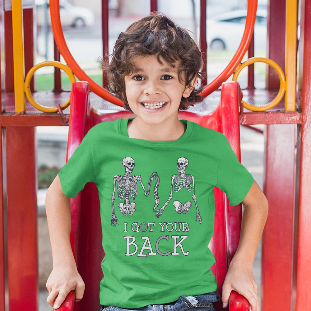 I GOT YOUR BACK youth t-shirt happy halloween spooky skeletons kids green
