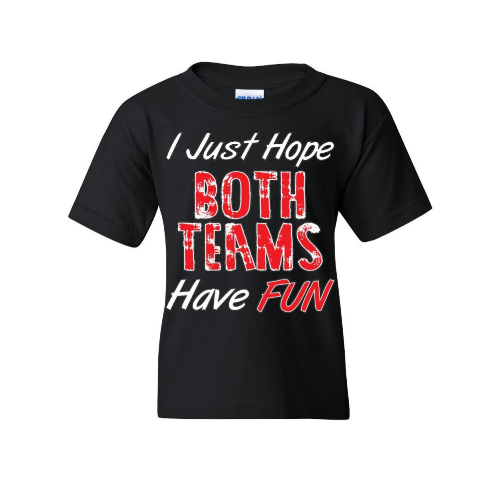 I JUST HOPE BOTH TEAMS HAVE FUN youth t-shirt football baseball hockey kids tee black