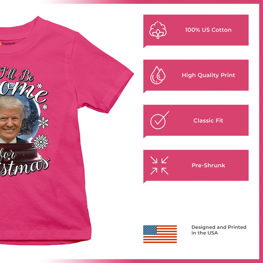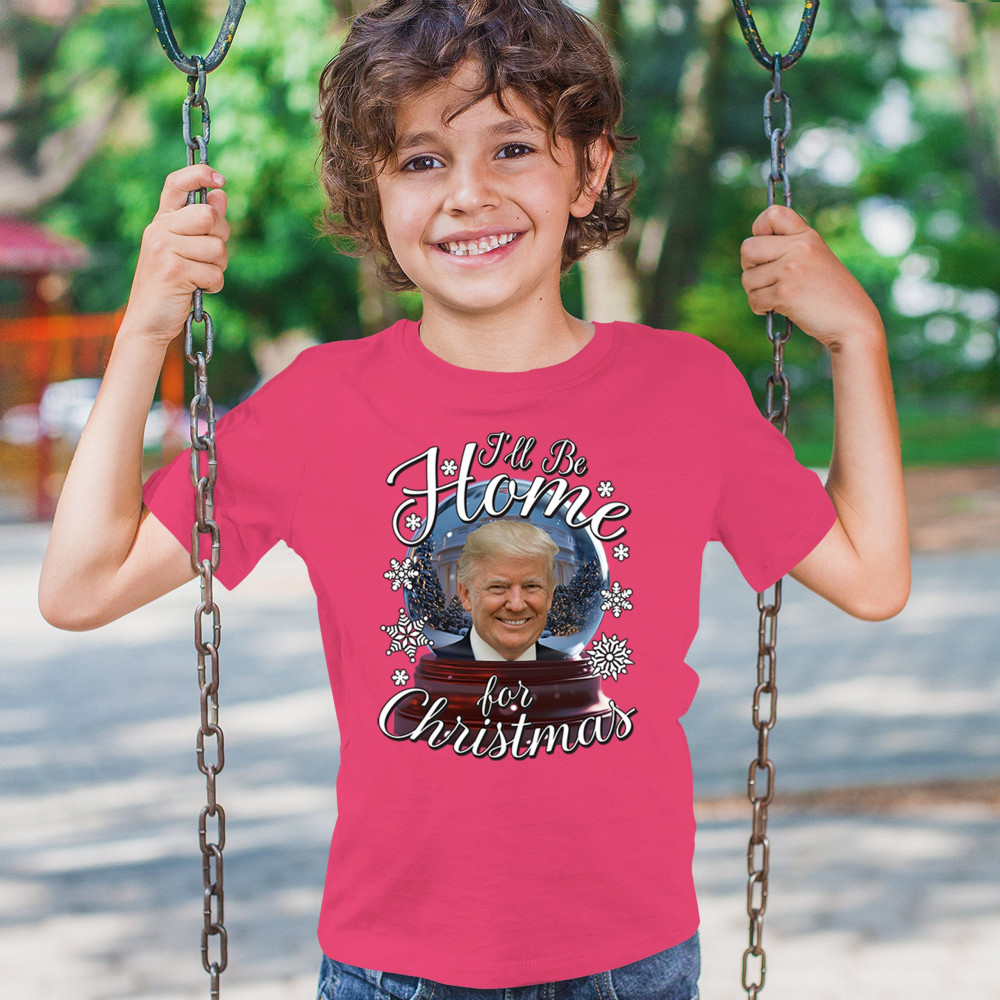 Get ready for the ultimate blend of holiday cheer and American pride with this "I'll Be Home for Christmas" design featuring Donald J. Trump in a festive snow globe. Perfect for gifts, holiday parties, or cozy mornings, this standout piece celebrates the season with style. Whether paired with matching pajamas or a cozy sweatshirt, it's a perfect way to add patriotic charm to your Feliz Navidad celebrations or office gatherings.