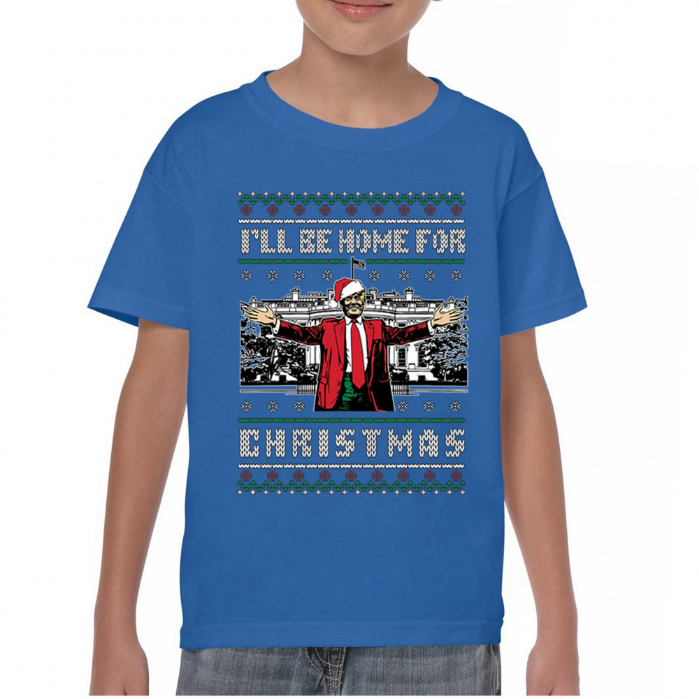 Add humor and patriotism to your holidays with this festive Trump "I'll Be Home for Christmas" design—perfect for parties and unique gifts!