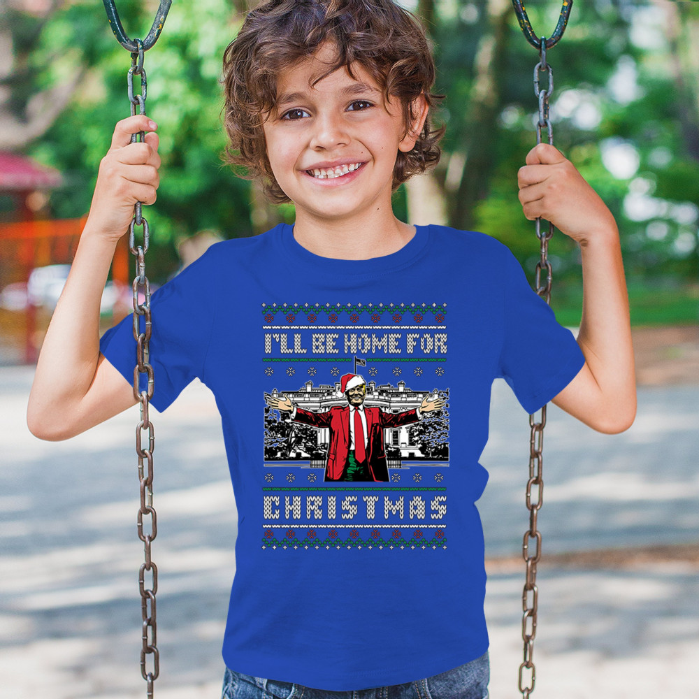 Get into the Christmas spirit with the "I'll Be Home for Christmas" design featuring Donald J. Trump in a festive holiday setting. Perfect for ugly sweater contests, holiday gatherings, and unique gifts for supporters, this humorous design adds a bold, patriotic touch to your seasonal celebrations. Whether for cozy mornings or office parties, it's a must-have for holiday cheer.