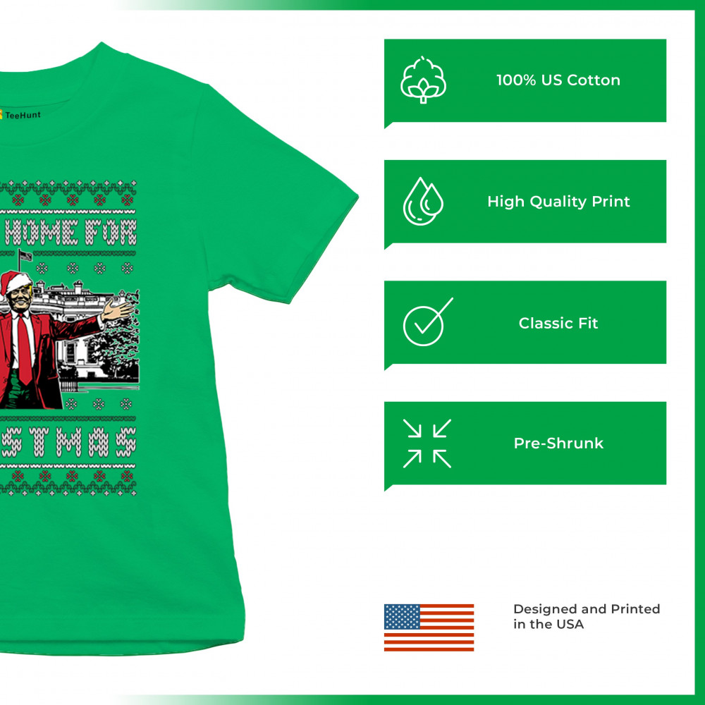 Get into the Christmas spirit with the "I'll Be Home for Christmas" design featuring Donald J. Trump in a festive holiday setting. Perfect for ugly sweater contests, holiday gatherings, and unique gifts for supporters, this humorous design adds a bold, patriotic touch to your seasonal celebrations. Whether for cozy mornings or office parties, it's a must-have for holiday cheer.
