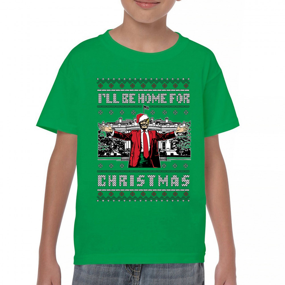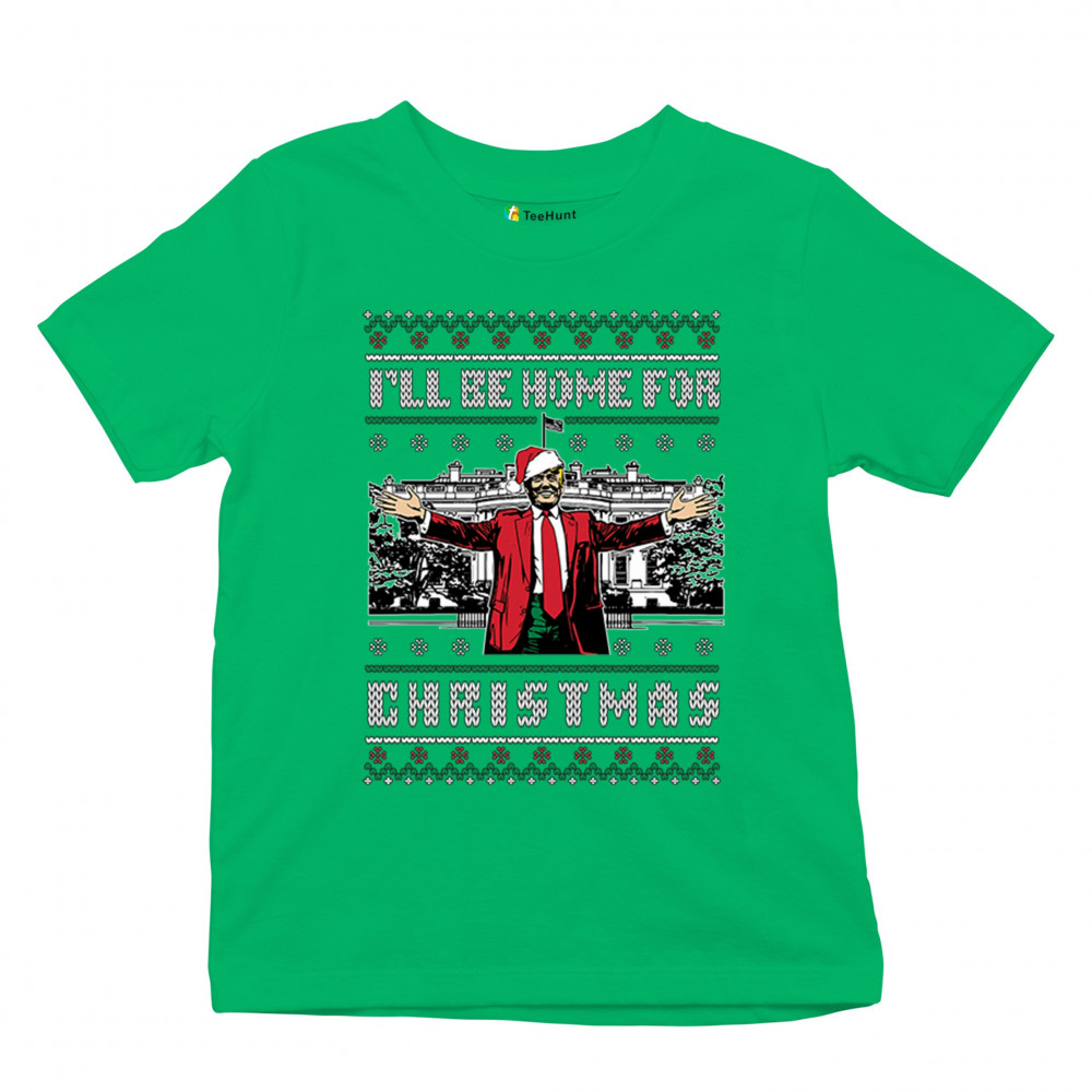 Add humor and patriotism to your holidays with this festive Trump "I'll Be Home for Christmas" design—perfect for parties and unique gifts!