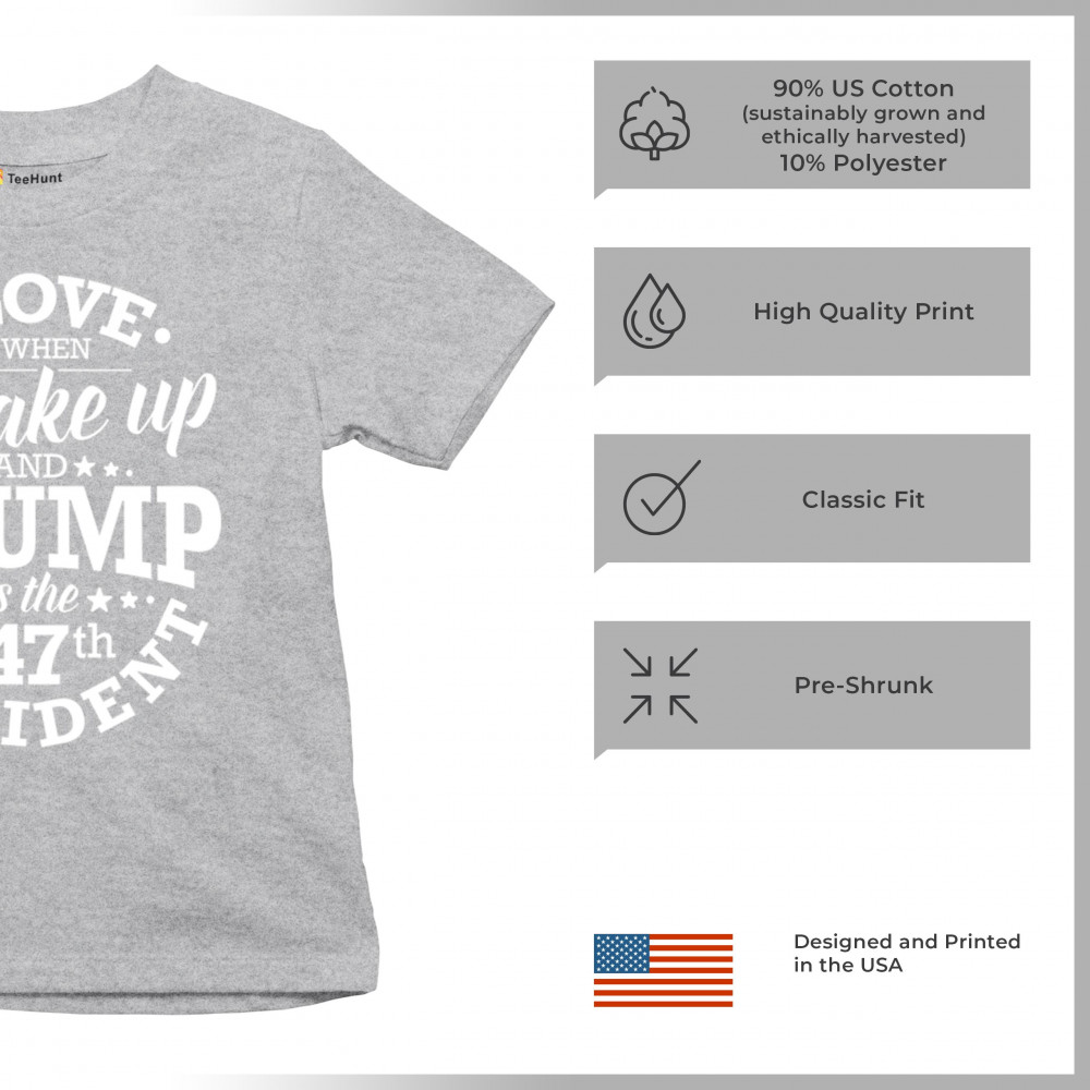 This "I Love It When I Wake Up and Trump is the 47th President" design is the ultimate expression of support for Donald J. Trump and his vision for America. Join the ranks of proud conservatives, Republicans, and America First advocates who are excited about the 47th President’s leadership. Celebrate the Red Wave and stay true to the values of freedom and strength that Trump embodies. Perfect for rallies, gatherings, and everyday patriotic wear.