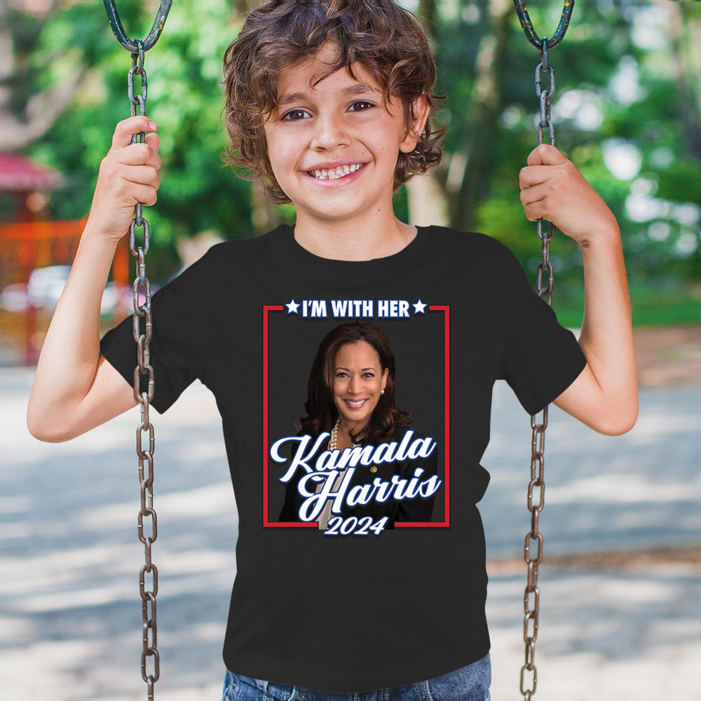 I'M WITH HER KAMALA HARRIS 2024 youth t-shirt president 47 i'm speaking kids black