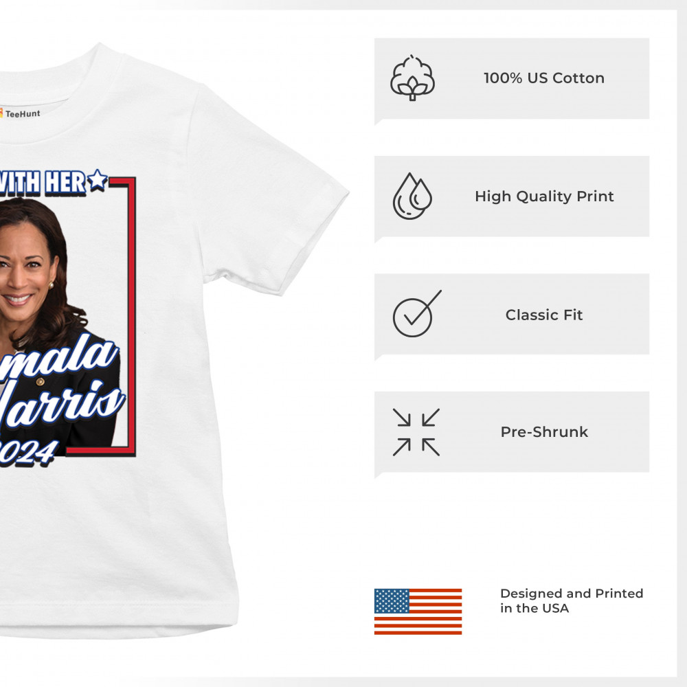 Stand with Kamala Harris in her 2024 presidential campaign with this vibrant design. Highlighting her commitment to progressive causes, this design is perfect for supporters of LGBTQ+ rights, women's rights, and social justice. Featuring the iconic "I'm With Her" slogan, it's a bold statement for anyone who believes in a brighter future. Wear it to rallies, events, or any day to show your support for Kamala Harris and her vision for America. A great addition to any supporter’s collection!